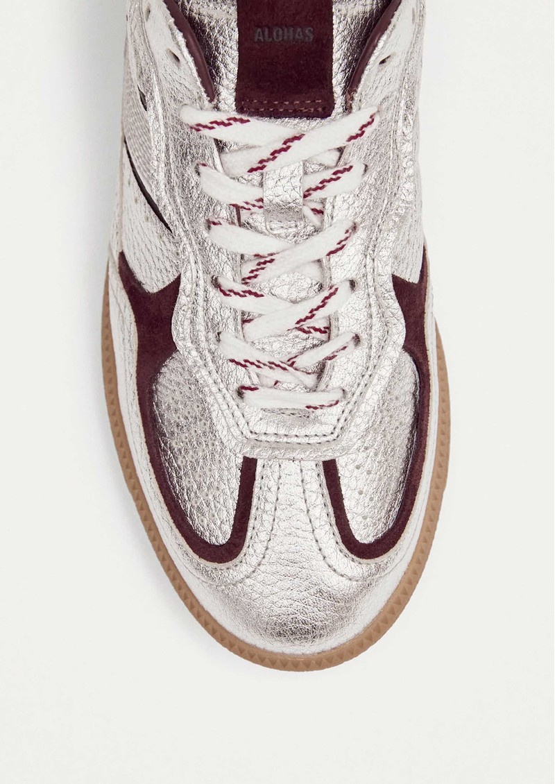 ALOHAS TB.490 Grain Shimmer Trainer - Silver/Burgundy