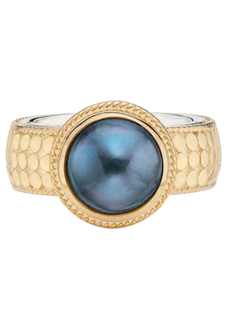 This Anna Beck ring is made of 18k gold-plated sterling silver with blue pearl