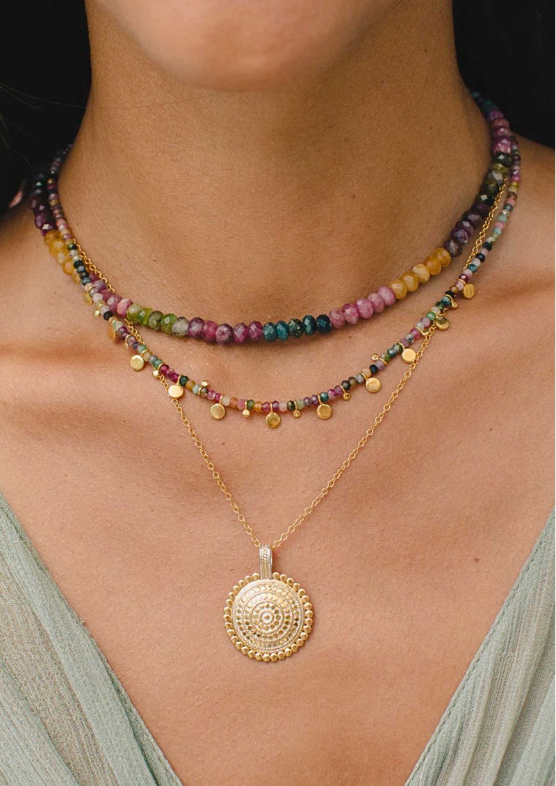 Part of the Jaipur & Scallop range, inspired by founder Becky’s travels to Jaipur, India, 15 years ago, the Anna Beck Scalloped Sundara Pendant Necklace showcases an ornate scallop technique mastered by only a few artisans in Bali. Bold and beautifully detailed, it celebrates tradition and craftsmanship, serving as a wearable love letter to Jaipur.