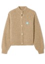 Refresh your wardrobe with the American Vintage East High Neck Cardigan in a warm Sable hue. Crafted from a soft blend of alpaca, wool, and polyamide, this cosy knit features a ribbed high neckline, elegant mother-of-pearl buttons, and full-length voluminous sleeves for a relaxed yet polished look.