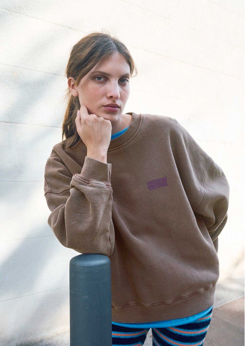 Discover the American Vintage Plizzy Sweatshirt in a warm Vintage Chestnut tone. Made from 100% cotton, this cosy sweatshirt offers a relaxed fit, subtle American Vintage branding, and soft ribbed edges for a laid-back, effortlessly stylish look