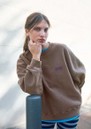 Style the American Vintage Plizzy Sweatshirt with Varley joggers, layering a Varley coat and finishing with a matching hat for a cosy, coordinated look.