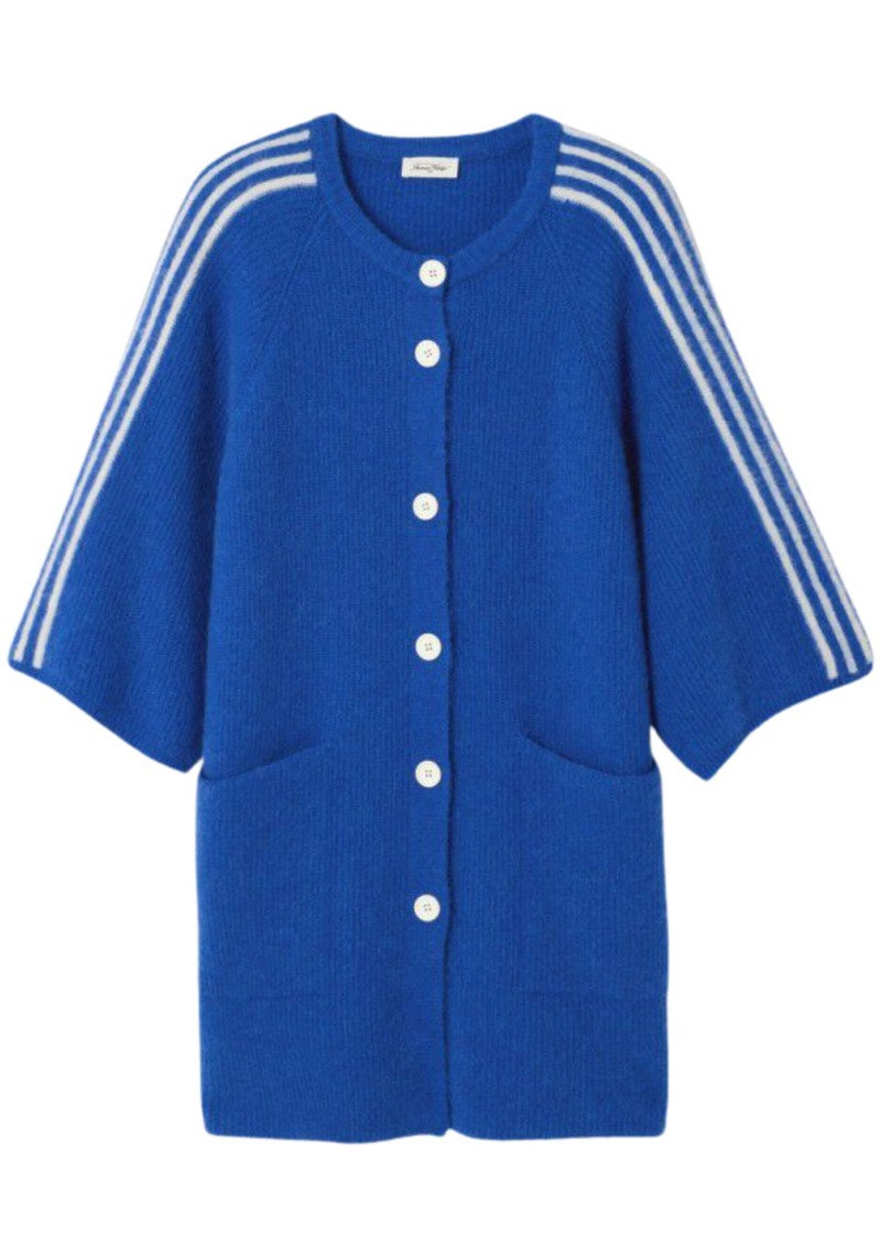 Meet the new season Vitow Longline Cardigan by American Vintage. This piece is a fun yet timeless addition to your wardrobe, reminiscent of 60's style. Style with tights and boots, or wear open with jeans as a longline cardigan for endless styling options. Crafted from a luxe alpaca blend, this piece features wide 3/4 length sleeves, and cool stripe detailing. Key features include: