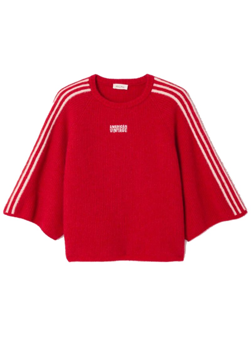 Meet the new season Vitow Boxy Jumper by American Vintage. This piece features a sports luxe twist with the stripe detailing, and the boxy silhouette makes it great for layering. Crafted from a luxe alpaca blend, this piece features wide 3/4 length sleeves, and embroidered branded detailing at the front. Key features include: