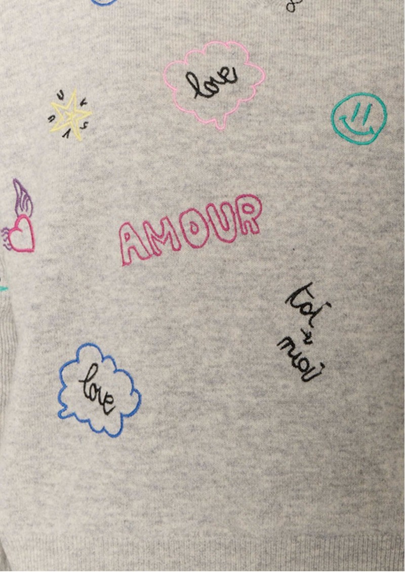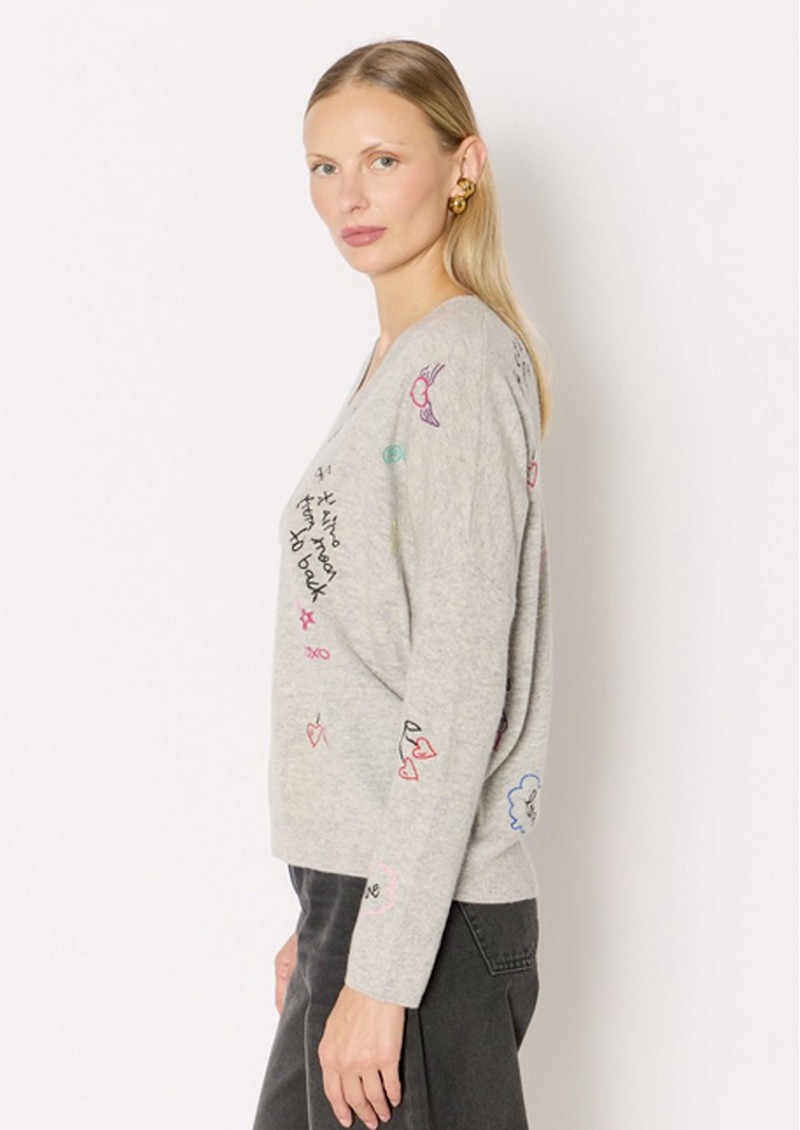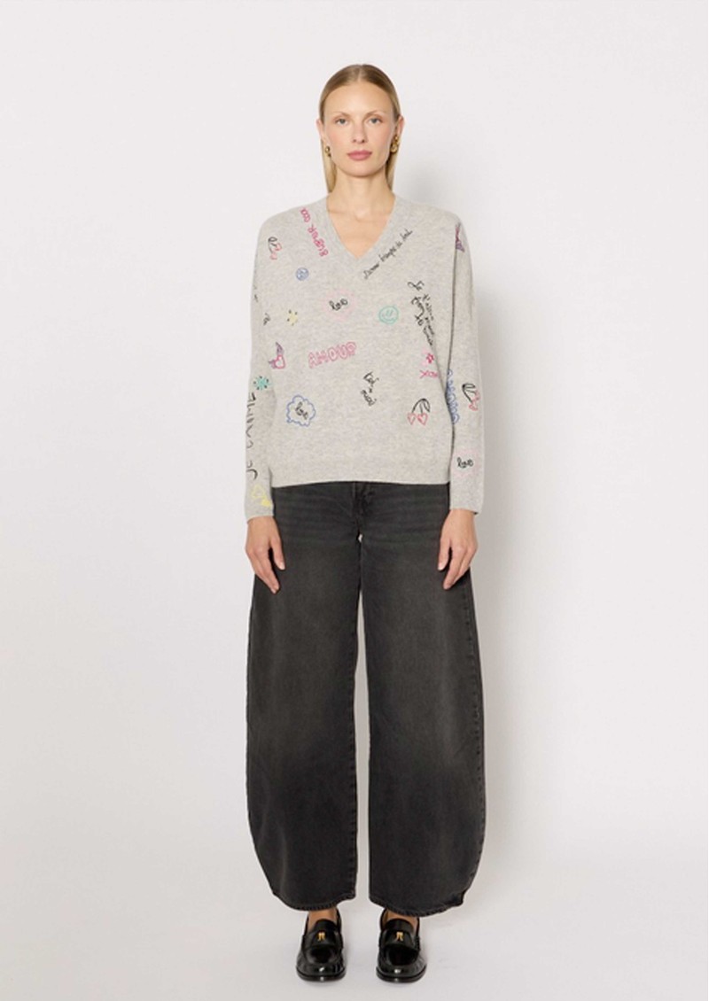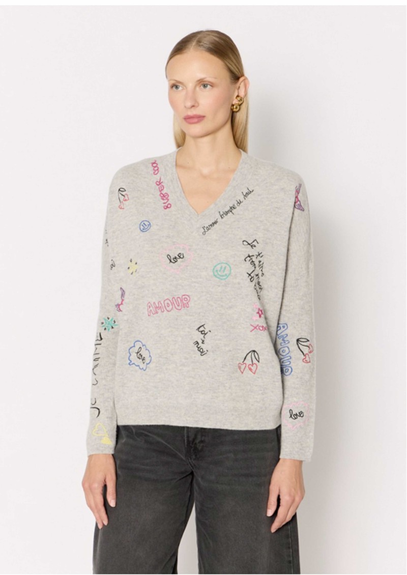 The Myneweveryday jumper by Berenice blends comfort with originality, featuring a loose fit and an elegant V-neck. Its full-length sleeves are adorned with delicate doodle-style embroidery, adding texture and a stylish, playful touch to this 100% wool sweater-perfect for elevating everyday looks.