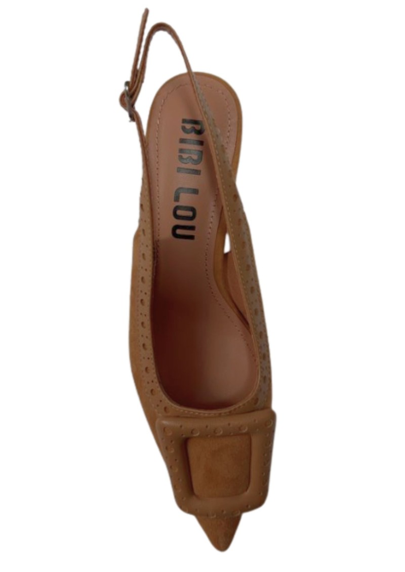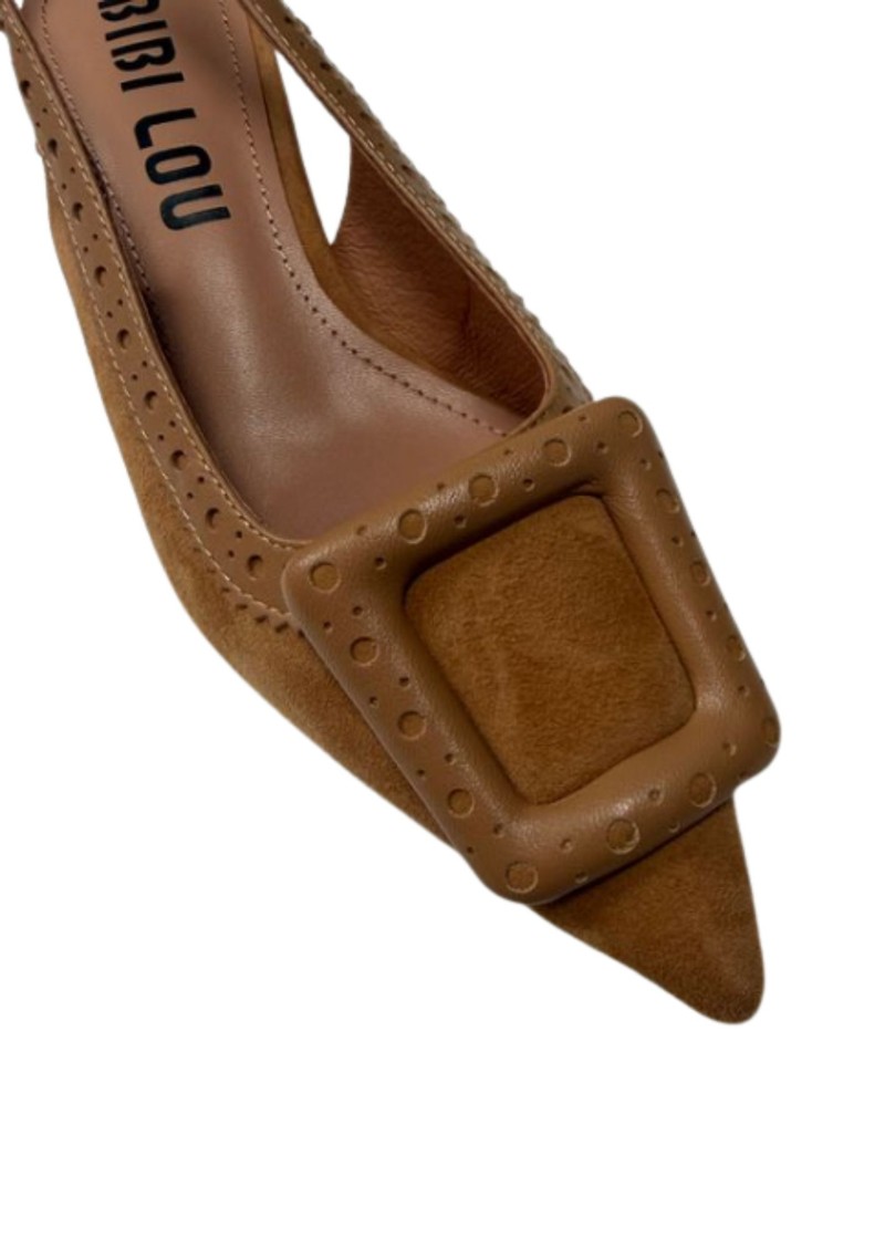 Say hello to the Bonnie Pump in Camel from Spanish brand Bibi Lou. Featuring a pointed toe, soft camel suede, central buckle detail and an adjustable ankle strap this heel delivers a sophisticated silhouette with a customisable fit, it's perfect for dressing up any outfit.