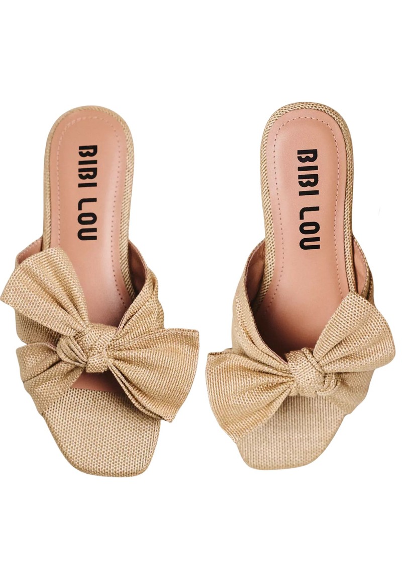 BIBI LOU Raffia Bow Slide Sandals - Natural