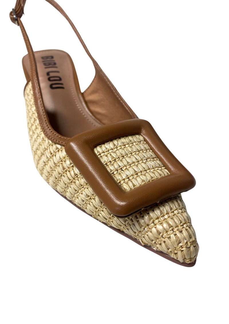 BIBI LOU Sling Back Raffia Heeled Pump - Natural