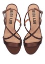 Introducing the gorgeous and elegant Zafiro Heels from Bibi Lou, designed in a Marron hue, a dark brown satin finish. This cross over strap design is beautiful on the foot and is finished with a side buckle closure. Other features include:
