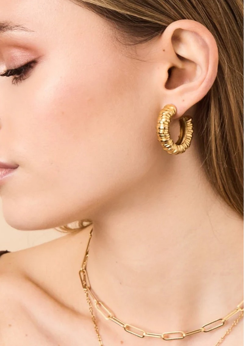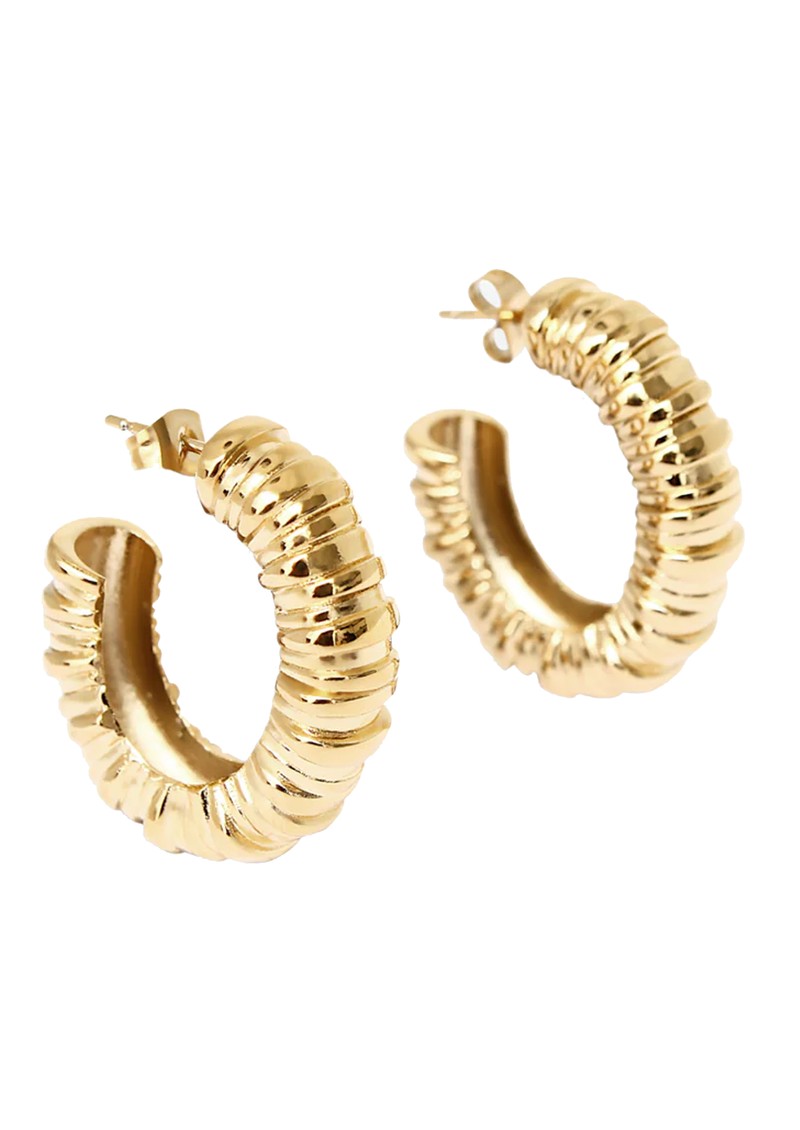 From new jewellery brand By Alona, introducing the stunning Easton hoop earrings which are beautifully detailed. Giving the illusion of stacked rings, these earring feature a slightly oval shape. Other features include: