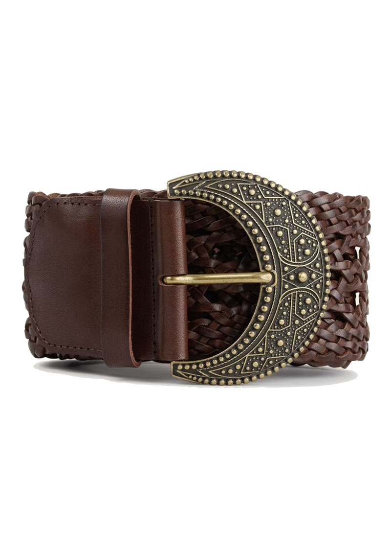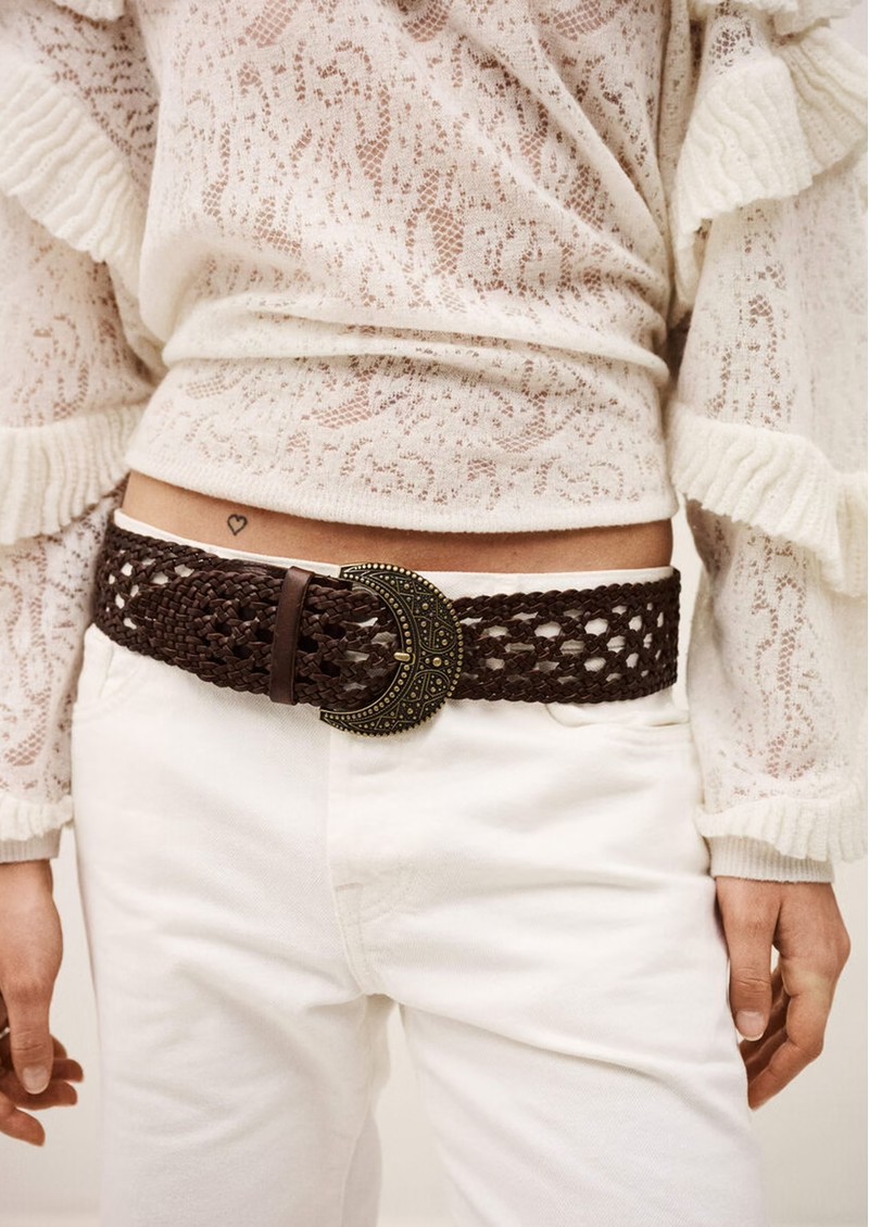 - Wide woven leather belt