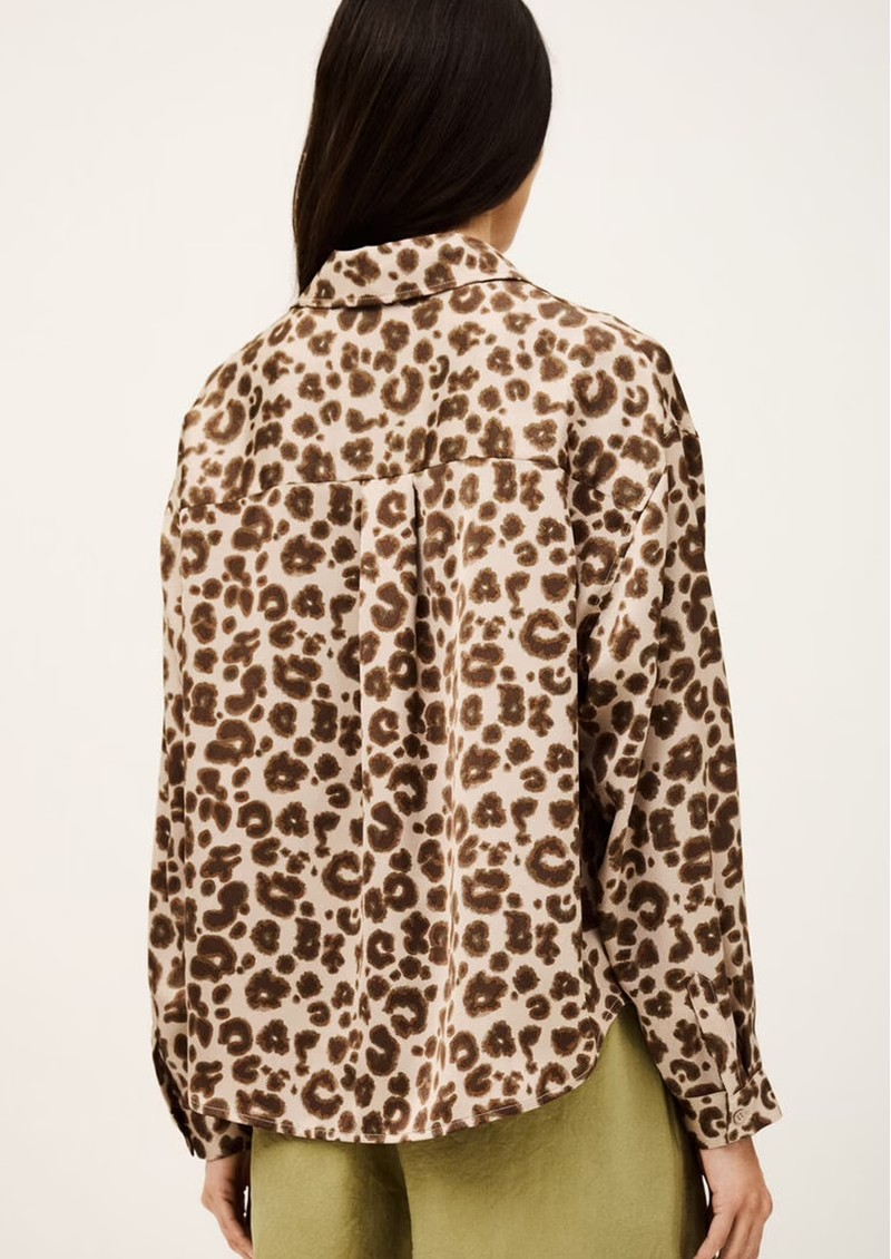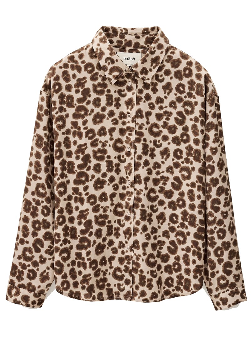 Introducing the Ba&sh Billie Shirt in Beige, a silky feel shirt decorated in a unique brown and beige leopard print. A classic collar and button down front, this flowing, relaxed shape style also features: