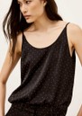 The Ba&sh Digue Vest Top in black is a strappy satin top with a rounded front neckline, V-back, and silver-tone stud detailing, crafted from recycled synthetic fibres for a sustainable, stylish finish.