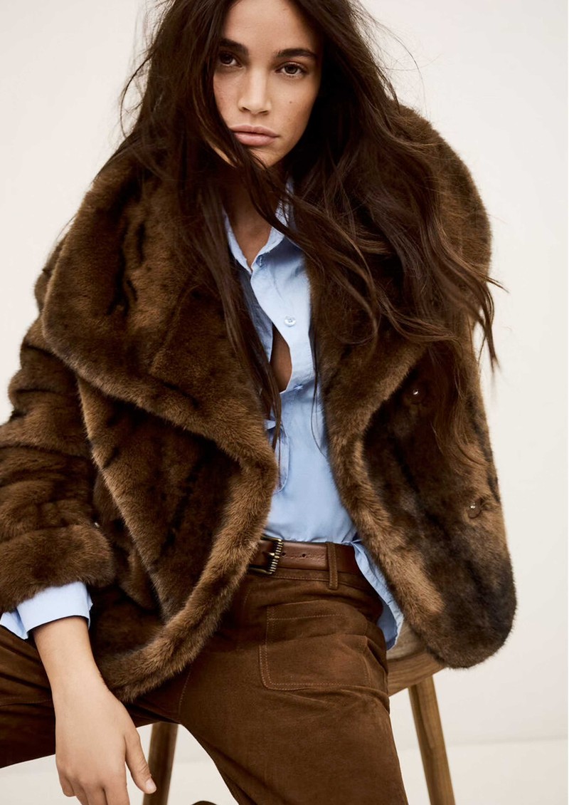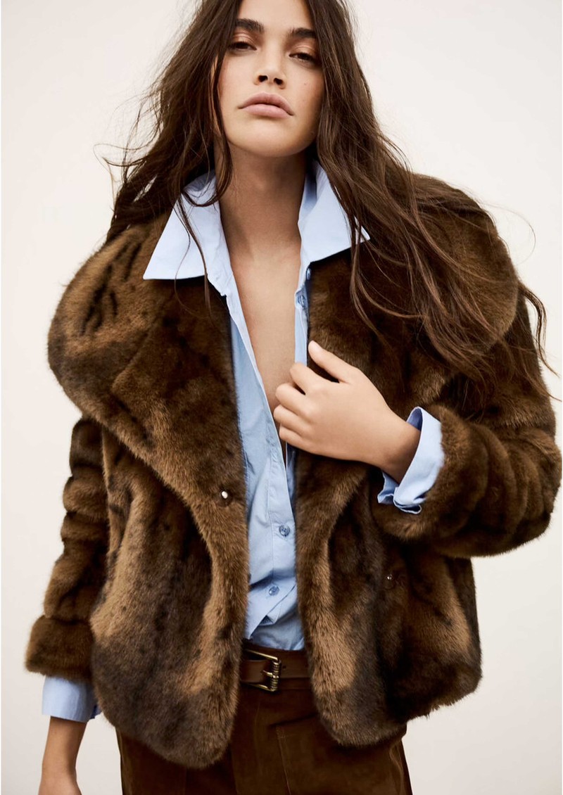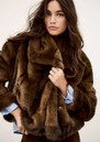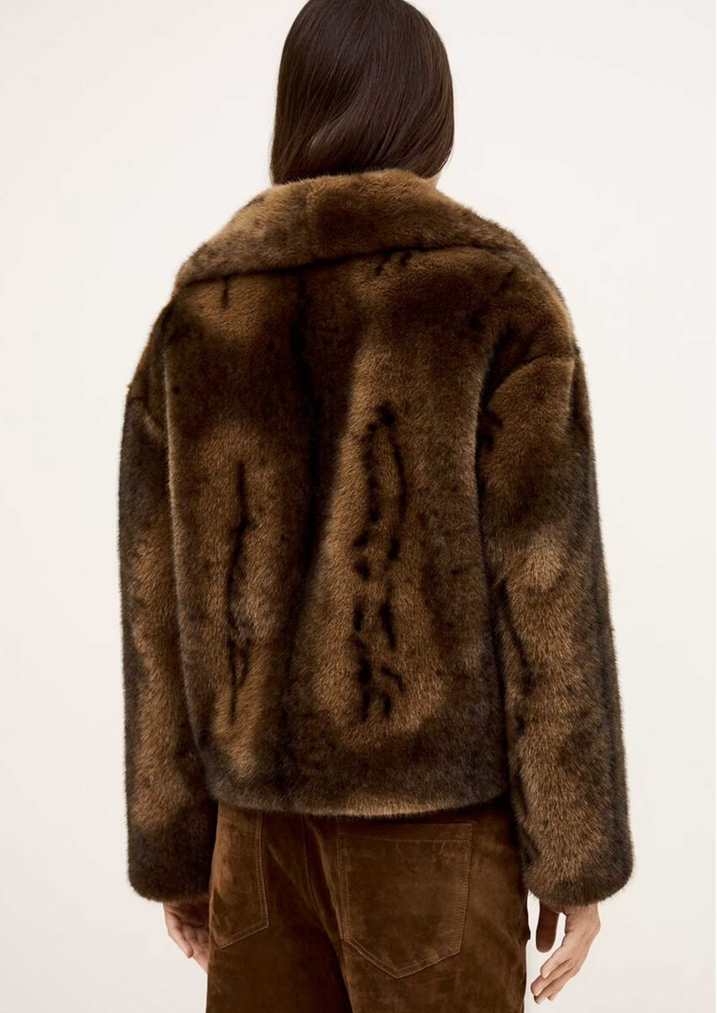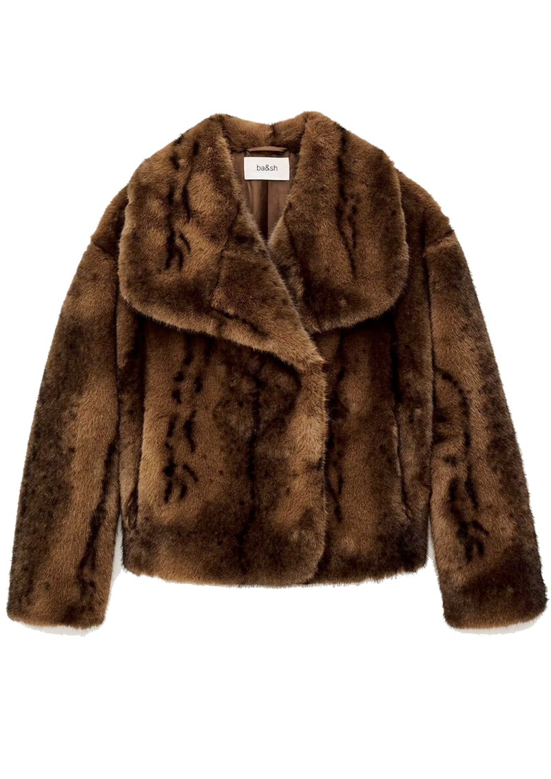 This Ba&sh cropped faux-fur jacket delivers instant luxury with its ultra-soft feel and rich brown hue. Finished with a bold collar and easy press-stud fastening, it’s the statement layer your wardrobe has been waiting for.
