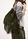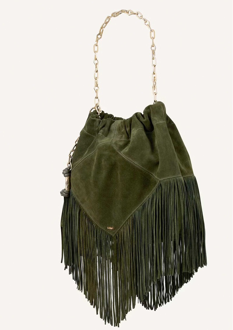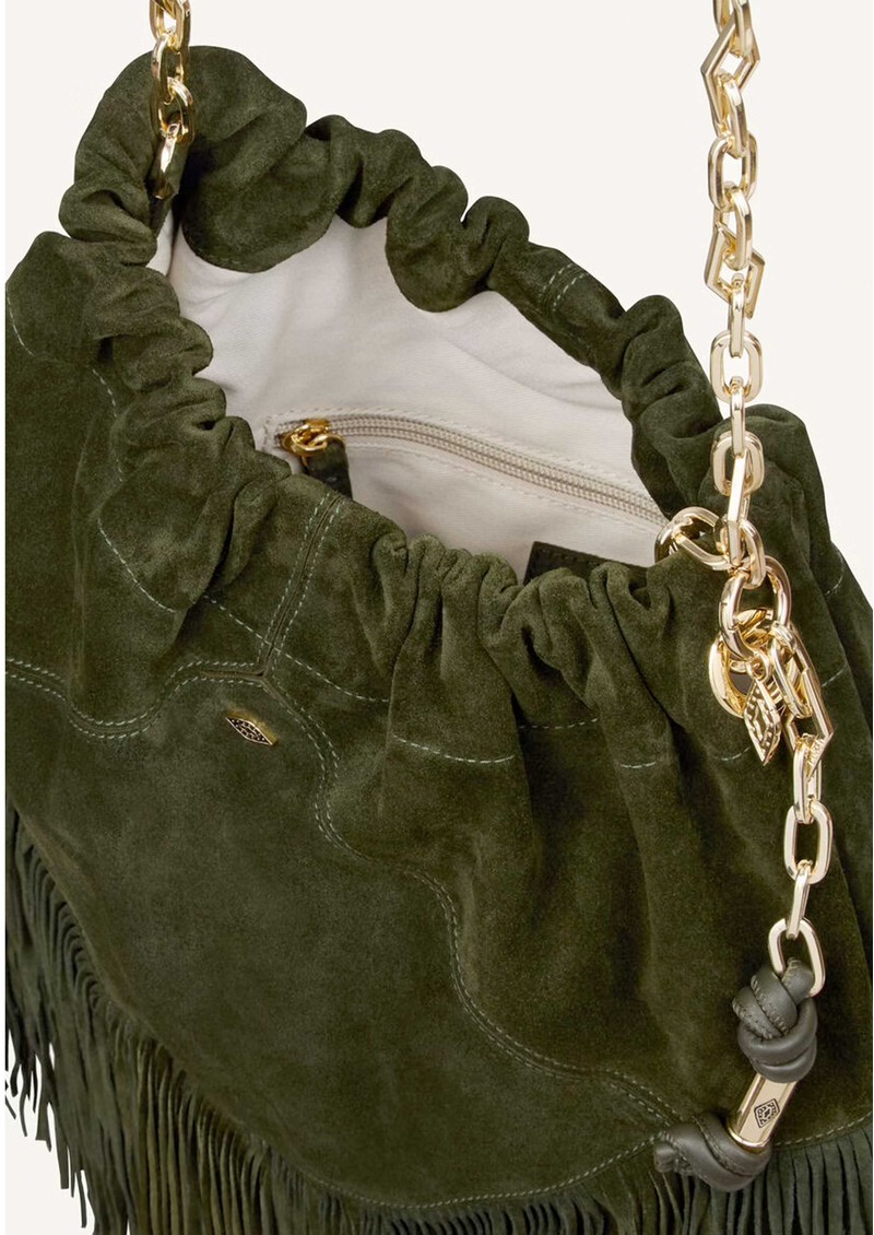 Ba&sh Medium June Suede Fringed Bag - Vert