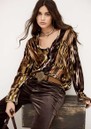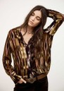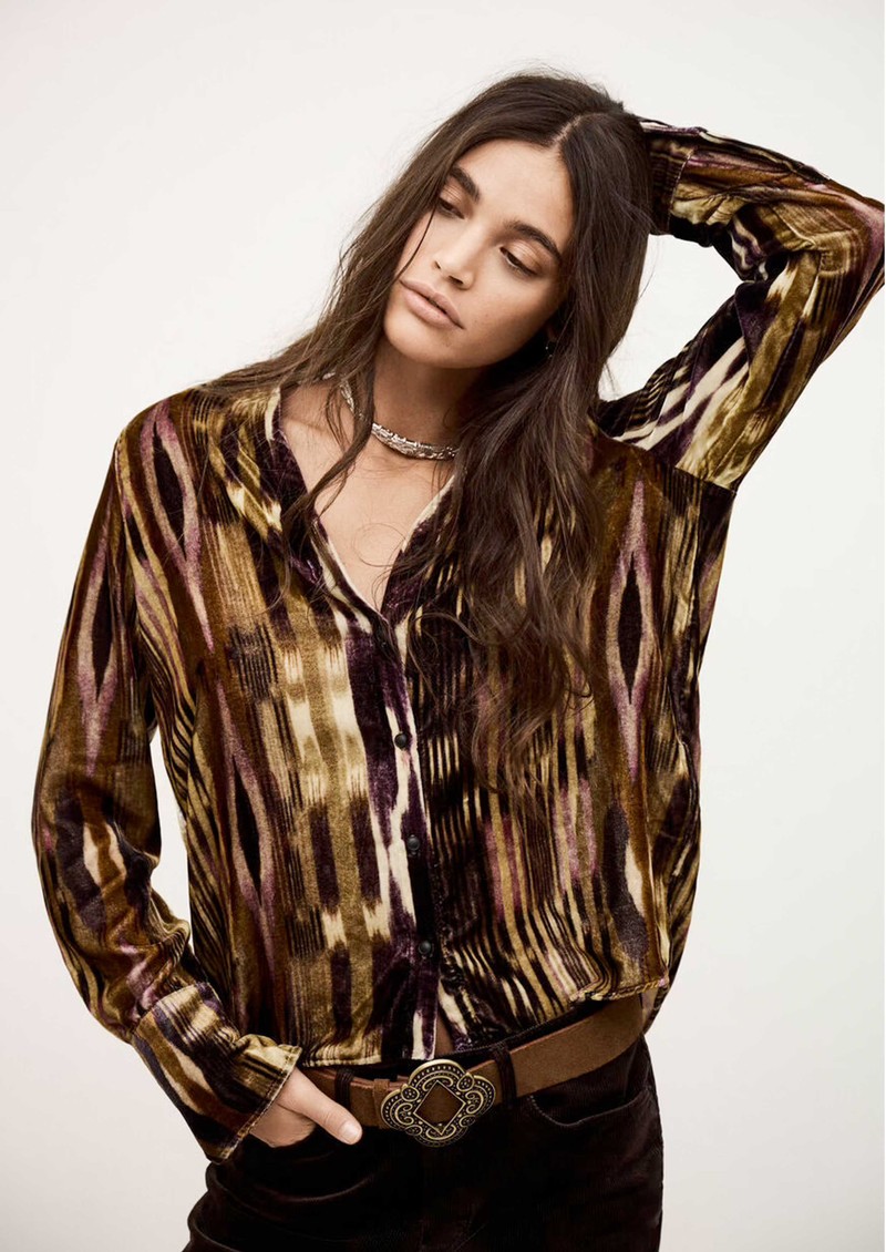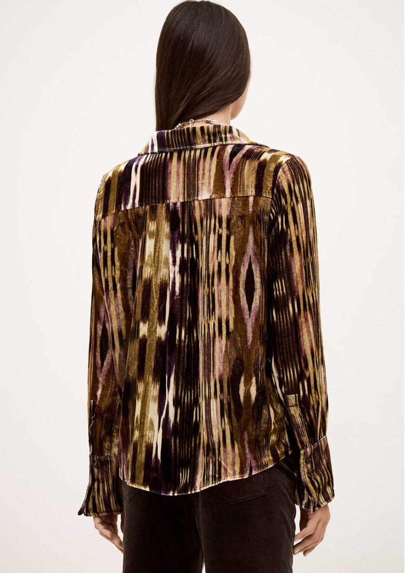 The Ba&sh Vany blouse is crafted from a luxurious blend of 82% viscose and 18% silk, offering a fluid, elegant feel. Featuring a V-neckline, long sleeves, central button closure, scalloped hem, and an all-over abstract print, this blouse combines sophistication with a playful, artistic touch.