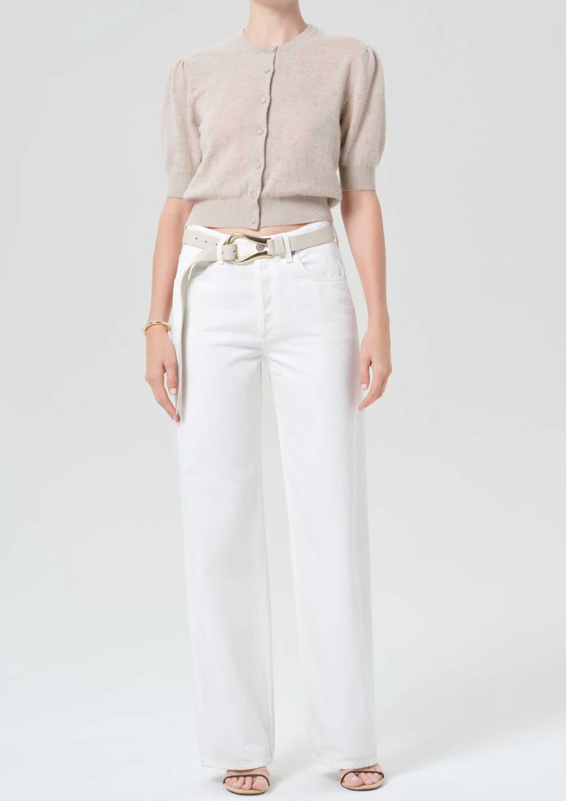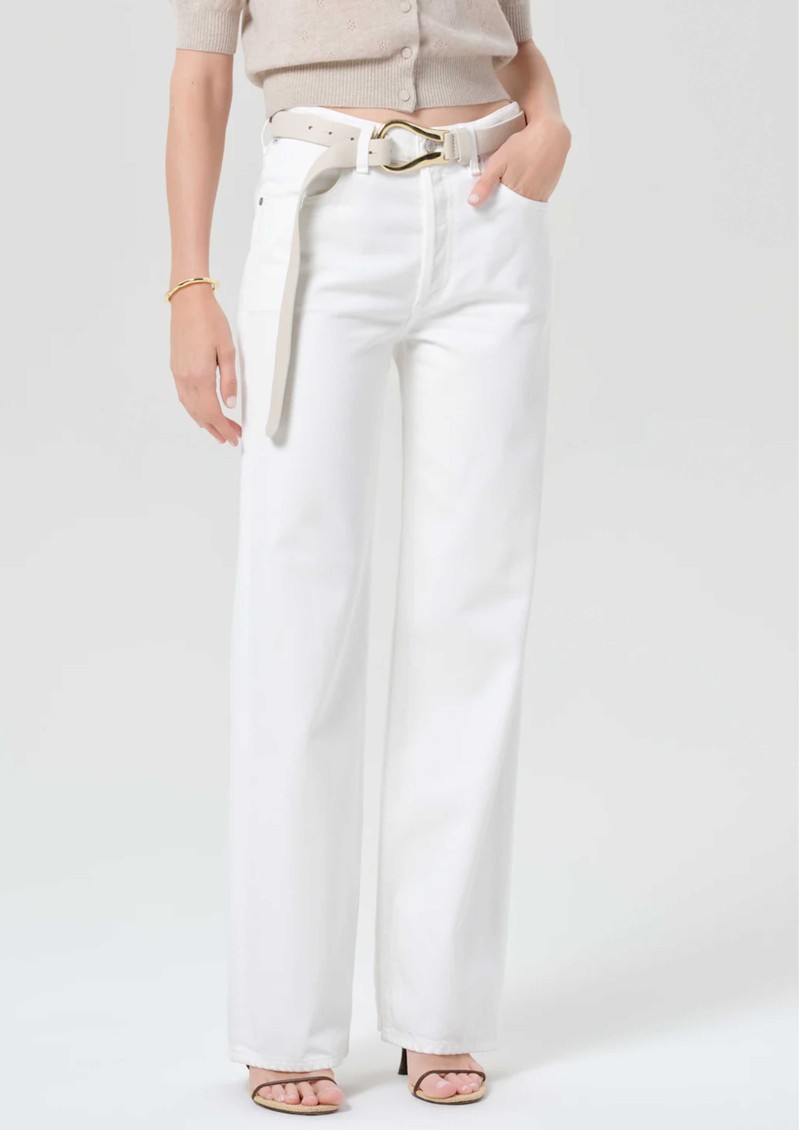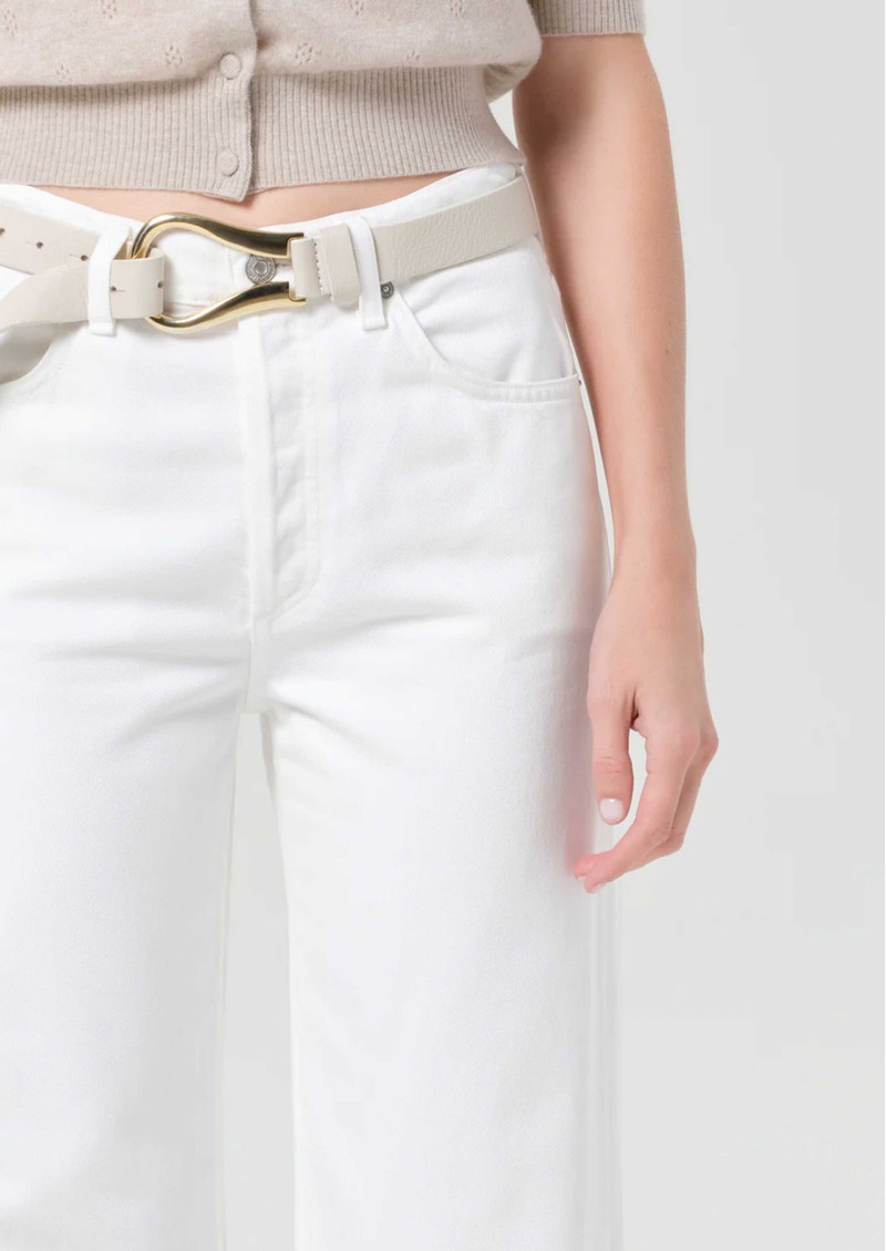 The Citizens of Humanity Annina 30 Straight Leg Jeans in Soft White offer a trouser-inspired take on classic denim, with a high-rise waist and ultra-relaxed straight leg for effortless sophistication. Crafted from a soft, drapey cotton blend, they move with ease and feature a full-length 30" inseam, making them perfect styled with a sleek bodysuit or a casual tee and lightweight layer.