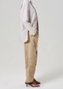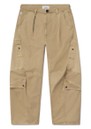 - Vintage-inspired utility pant with pleated waist and barrel-leg silhouette