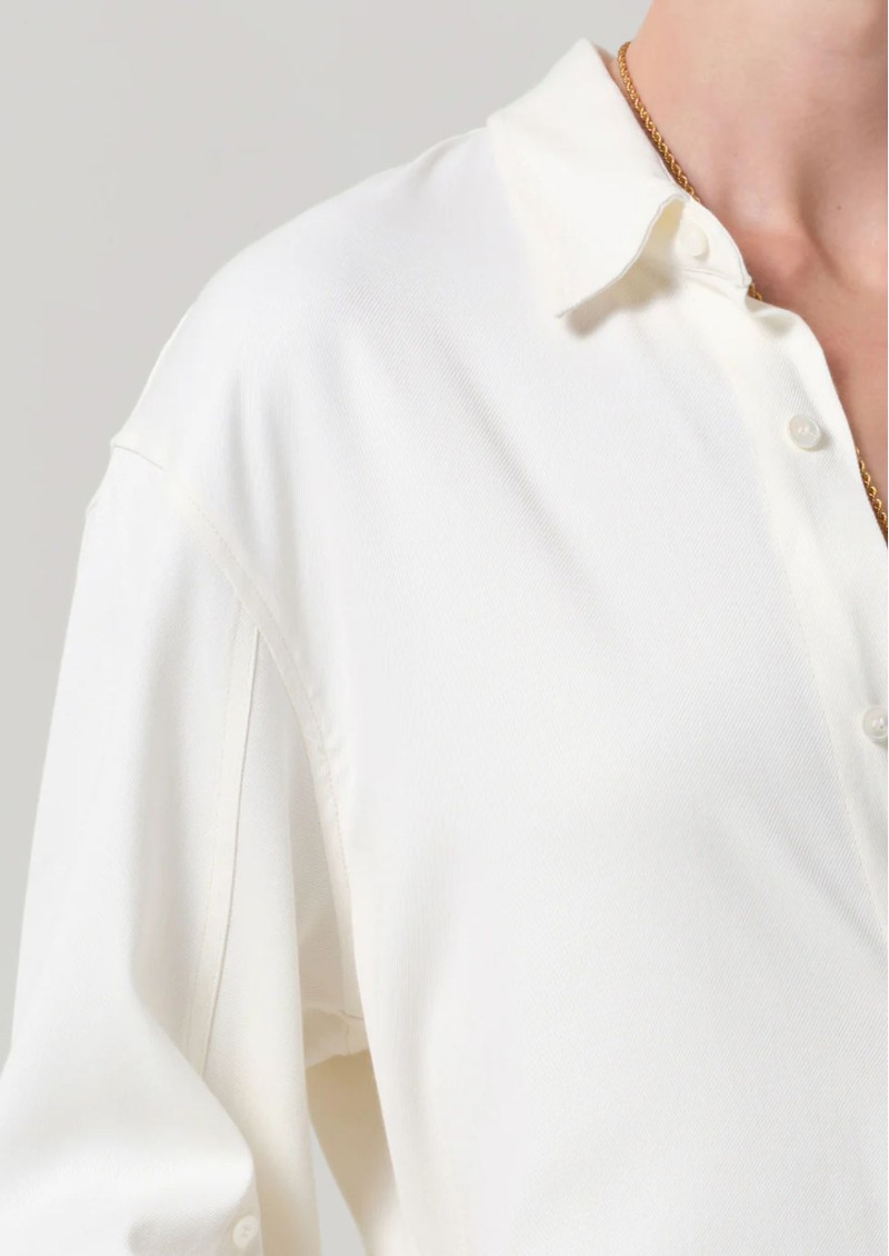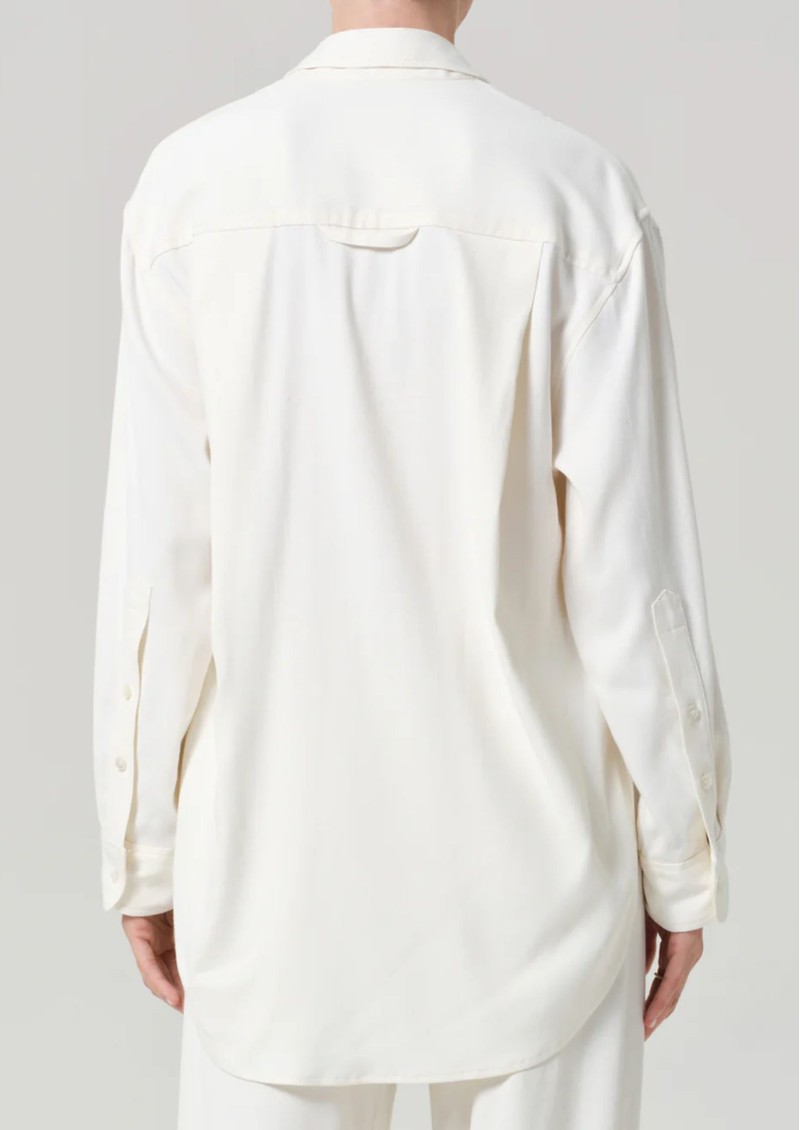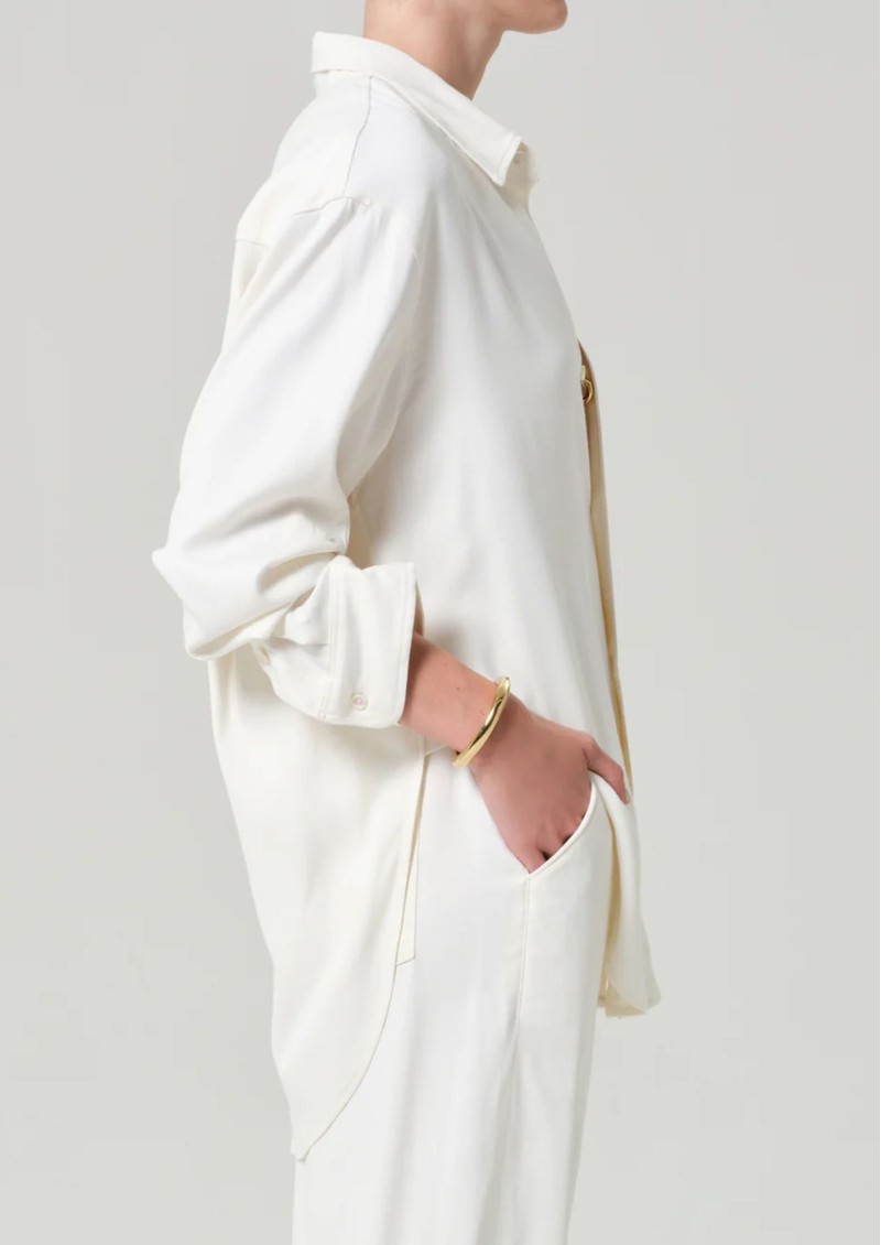 Elevate your everyday wardrobe with the Citizens of Humanity Kayla Shirt in Moonlight, crafted from smooth Italian twill that drapes effortlessly for a polished yet relaxed look. Perfect worn tucked, layered, or loose, this versatile shirt from the Humanity Collection combines understated elegance with everyday ease.