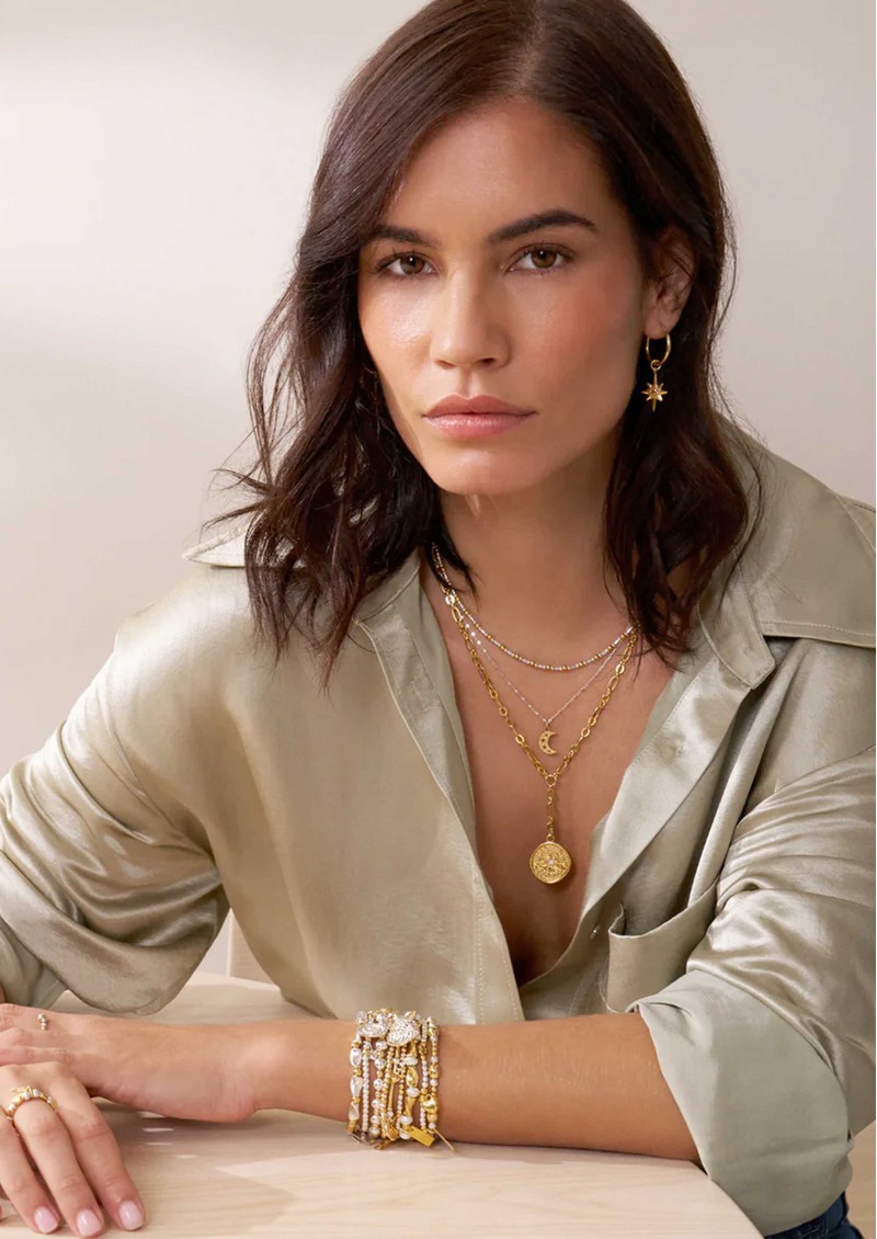 Pair your Chlobo necklace with a Rails top and trousers, then layer on Chlobo bracelets for a complete, stylishly stacked look.