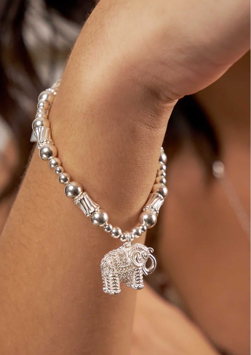 The Chlobo Twist Sacred Elephant Bracelet in Silver features a sacred elephant charm surrounded by bold, chunky beads, symbolising wisdom, resilience, and gentle strength. This meaningful bracelet serves as a daily reminder of inner power, courage, and compassion, while adding texture and presence to any stack.