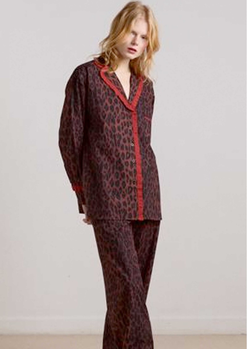 DAMSON MADDER Antonia Organic Cotton PJ Set - Dark Leopard/Red