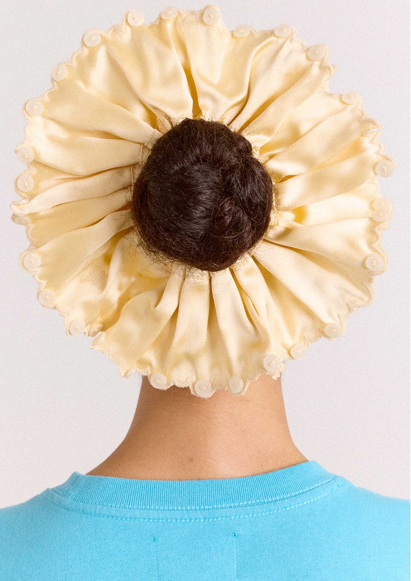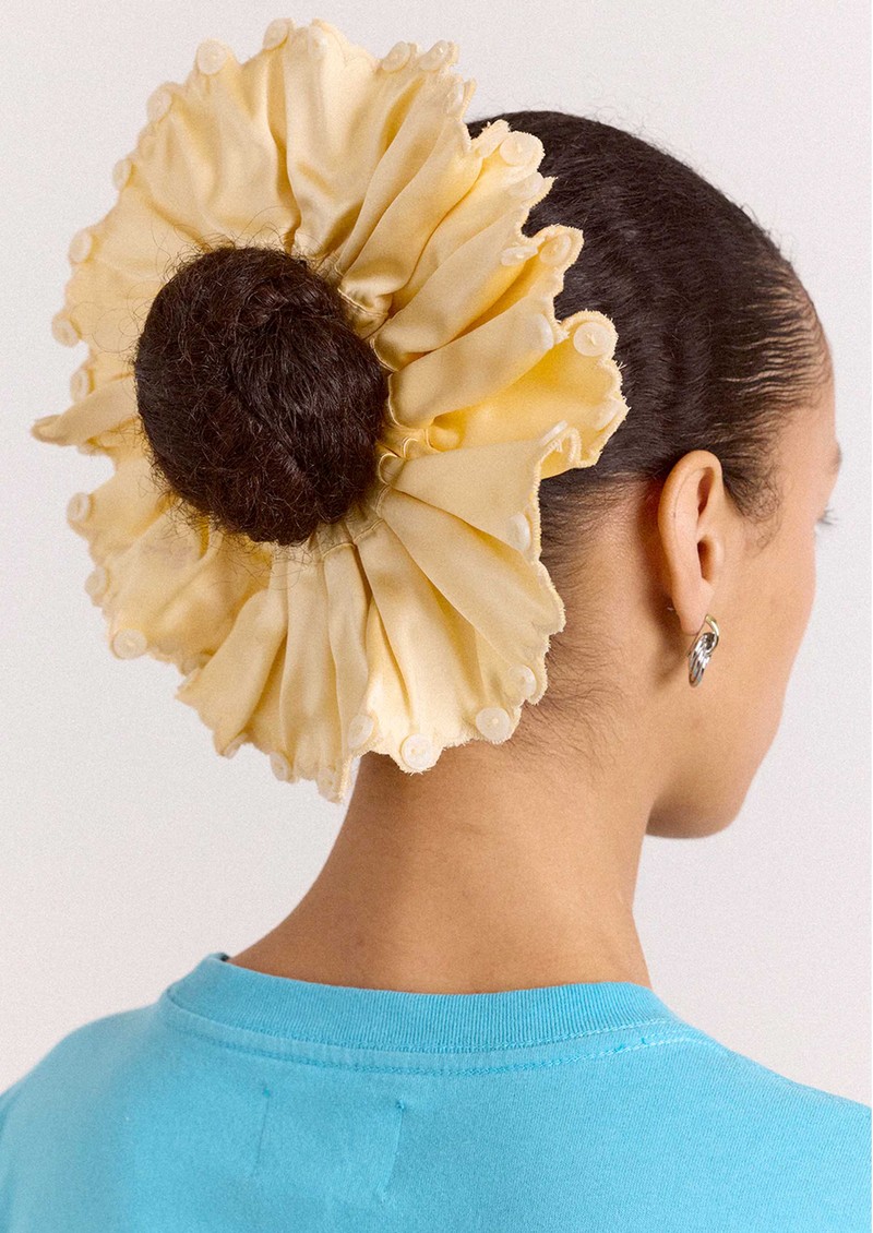 DAMSON MADDER Button Satin Scrunchie - Yellow