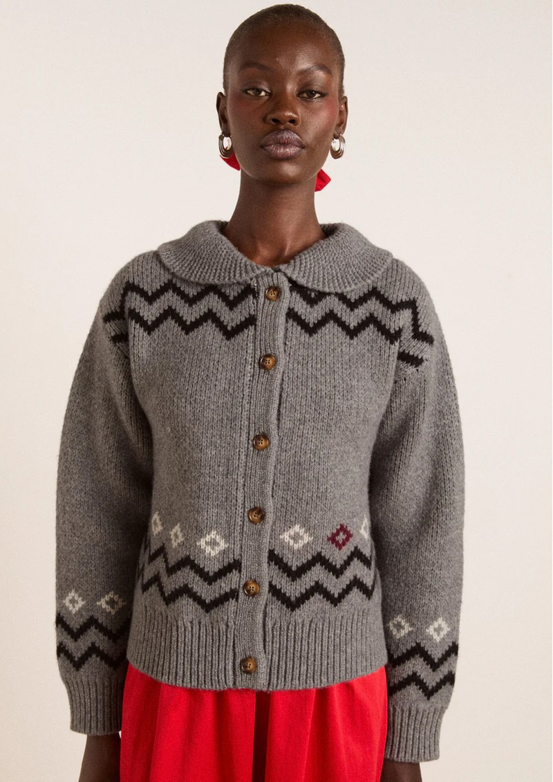 DAMSON MADDER Cecily Collar Intarsia Wool Cardigan - Grey