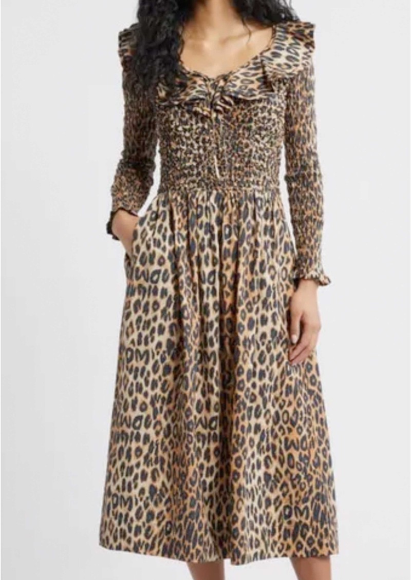 DAMSON MADDER Harper Shirred Midi Dress - Leopard