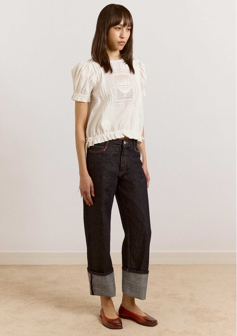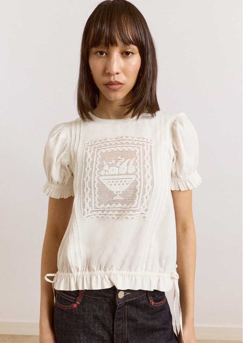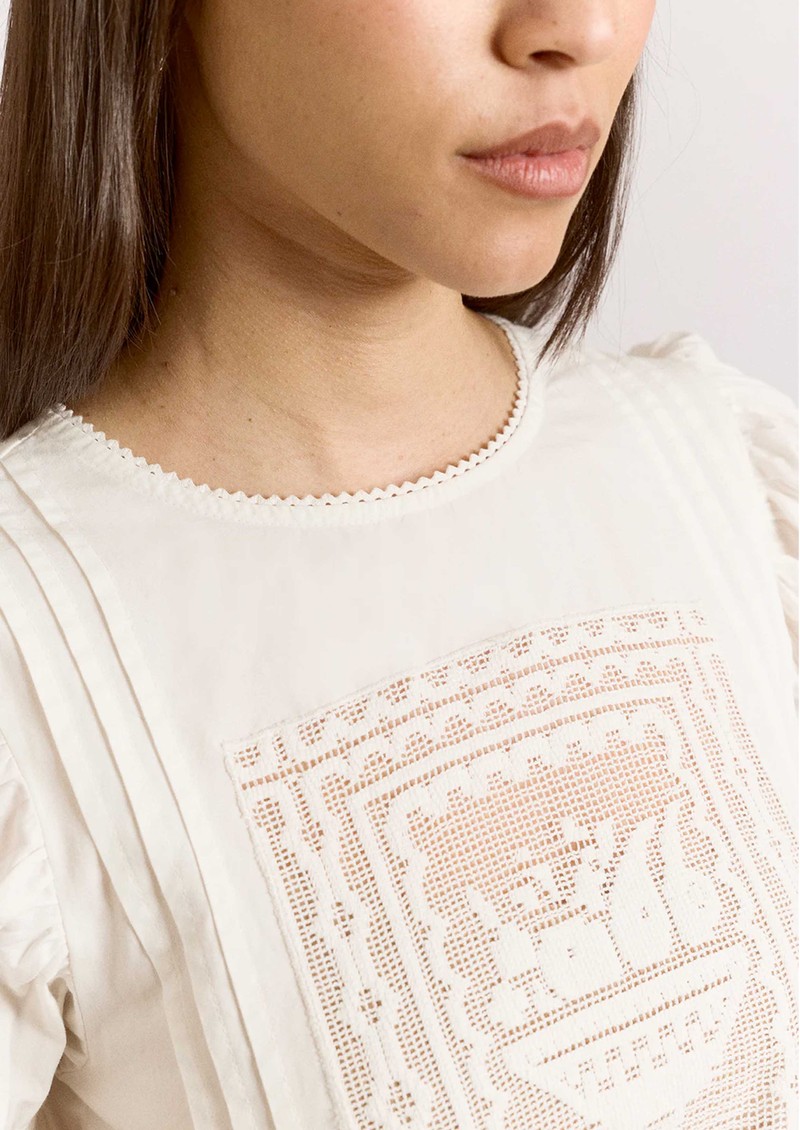 DAMSON MADDER Mabel Lace Insert Organic Cotton Blouse - White