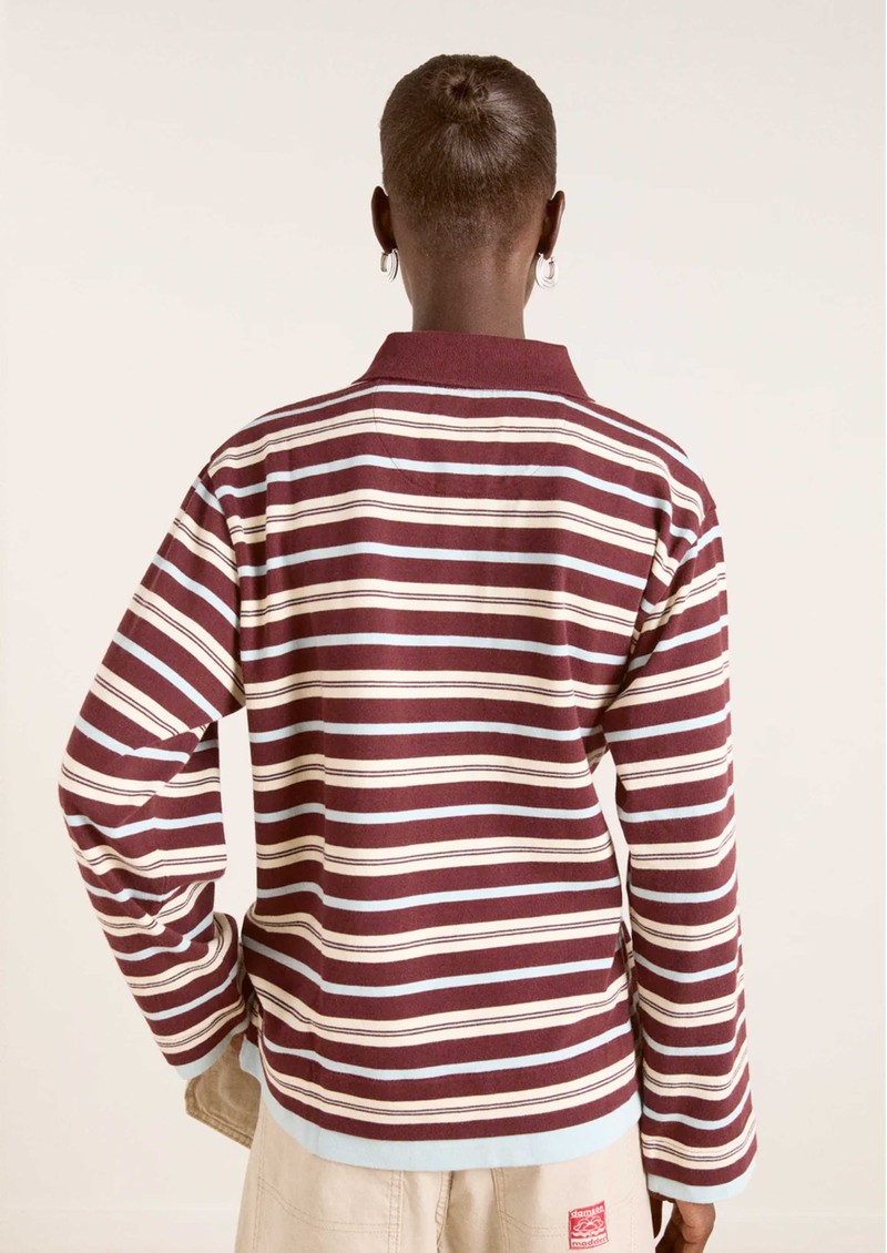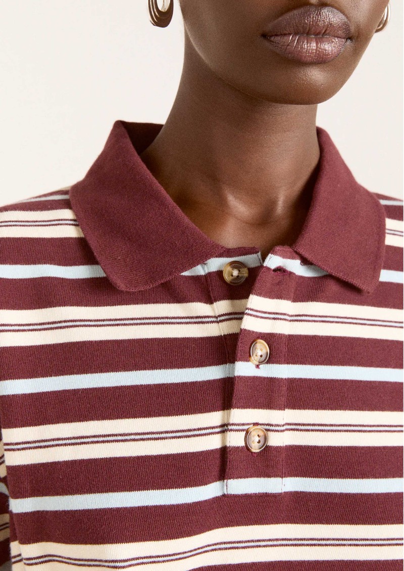 DAMSON MADDER Noah Cinch Organic Cotton Rugby Top - Chocolate/Blue