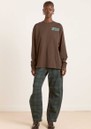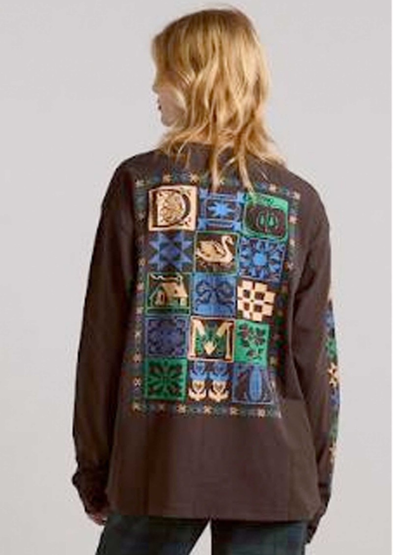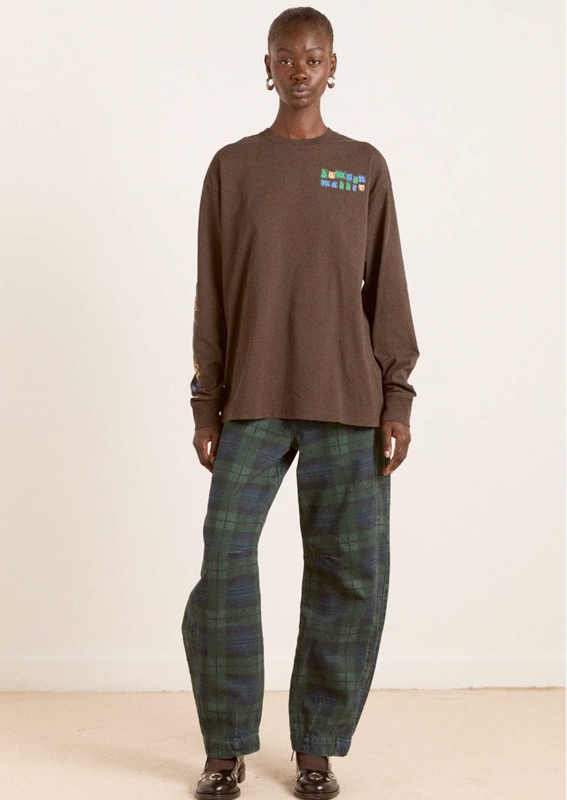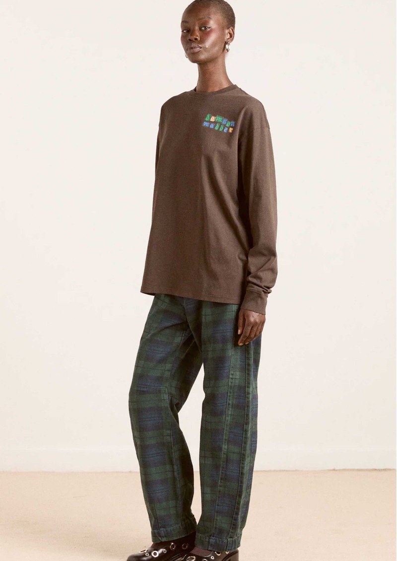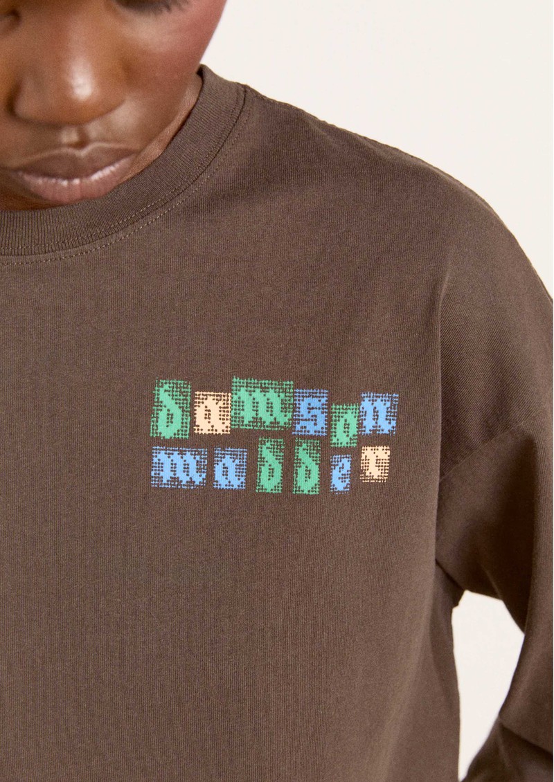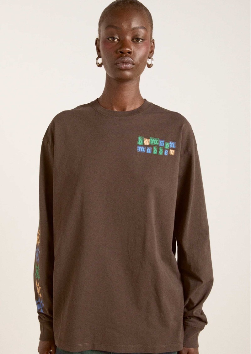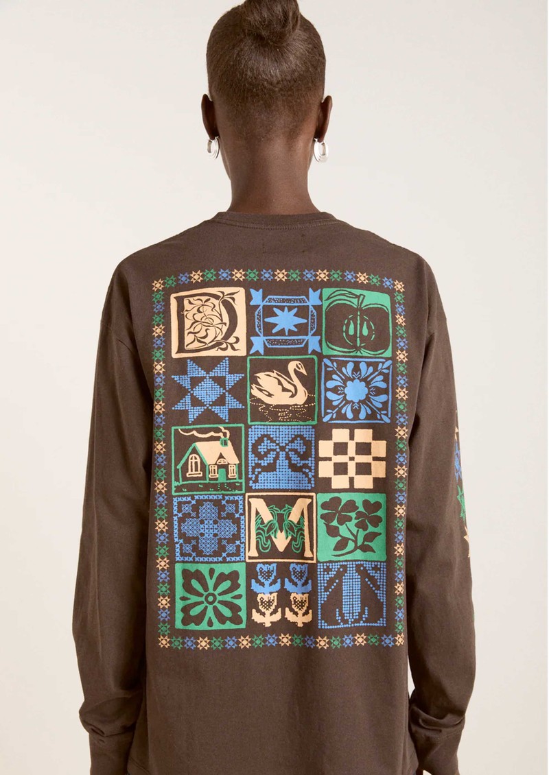 DAMSON MADDER Patchwork Quilt Organic Cotton Long Sleeve Tee - Coffee Bean