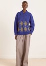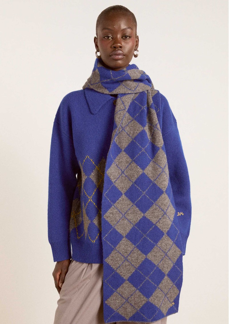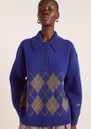 DAMSON MADDER Saskia Slouchy Lambswool Jumper Bold Argyle - Cobalt