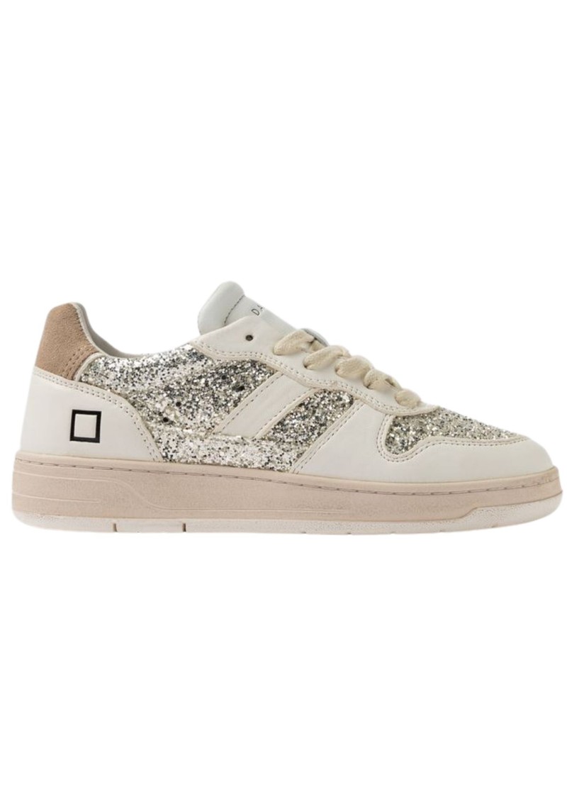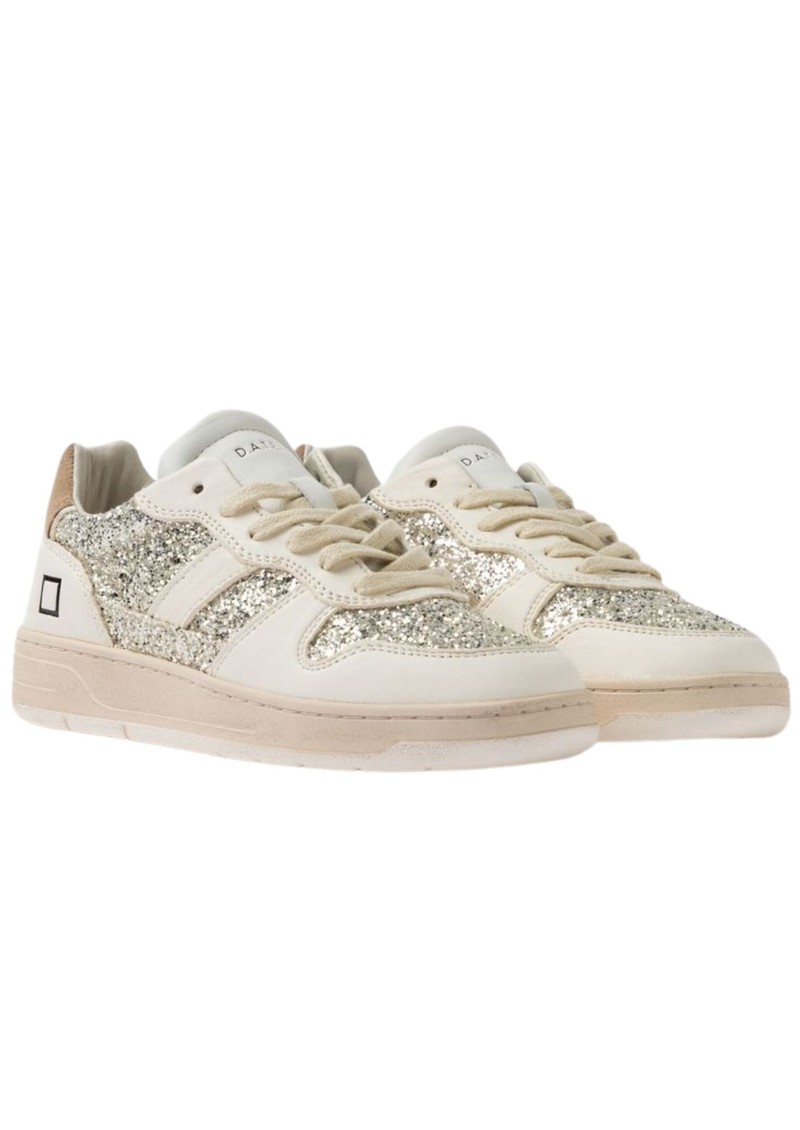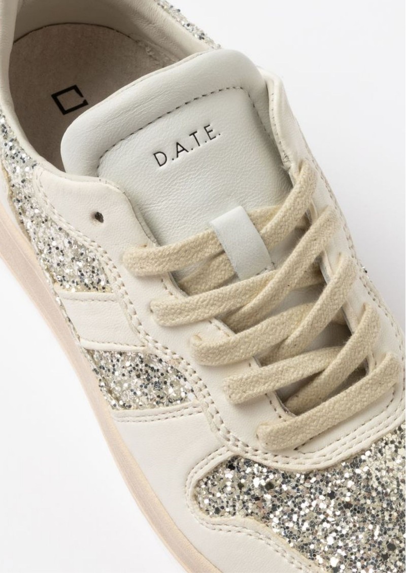 The D.A.T.E. Court 2.0 in Glitter Platinum brings standout sparkle to your everyday rotation, combining sport-inspired design with luxe Italian craftsmanship. With a perforated toe for breathability and signature D.A.T.E. details, this sneaker offers all-day comfort thanks to its raised insole and durable rubber sole.