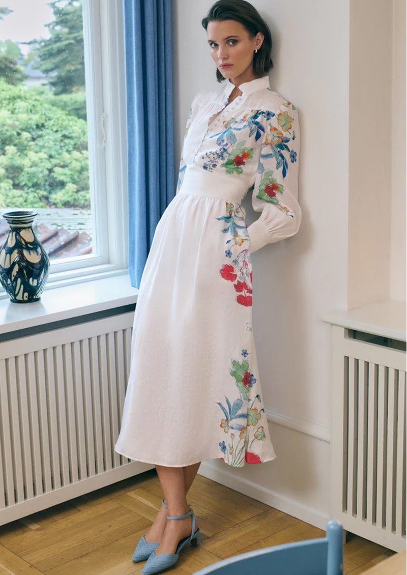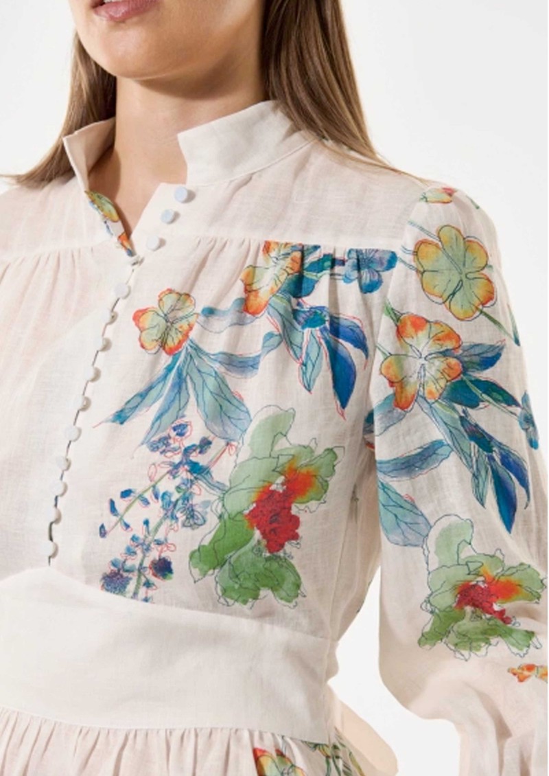 DEA KUDIBAL Alondradea Floral Linen Dress - Floral Leche