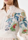 • Off-white base with bold, colourful floral pattern