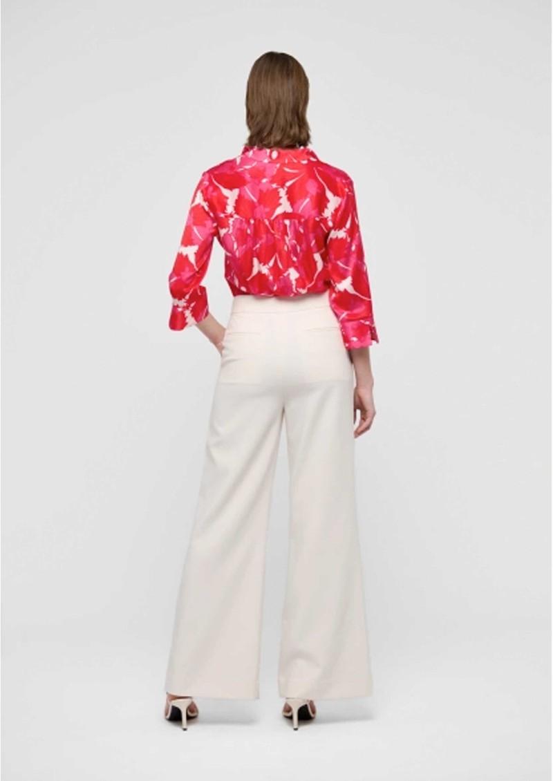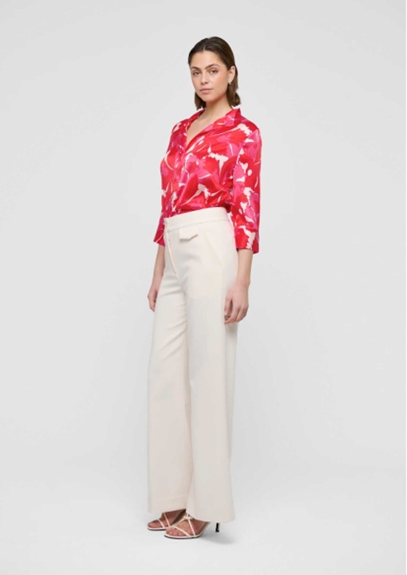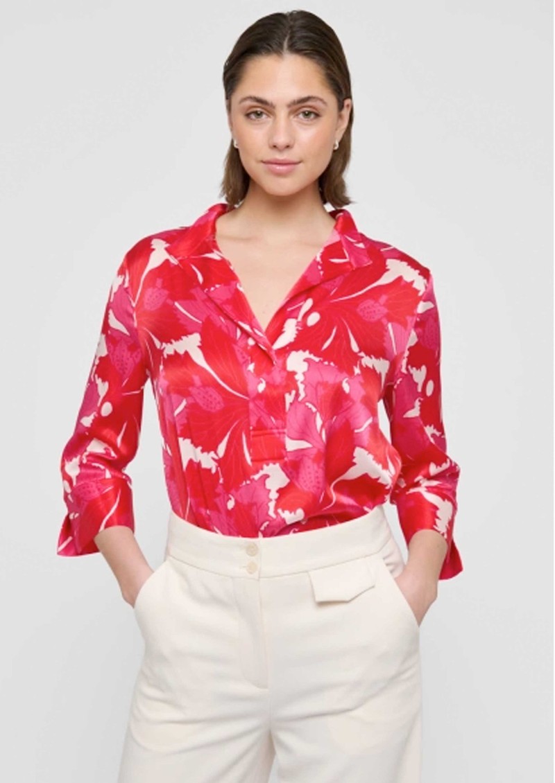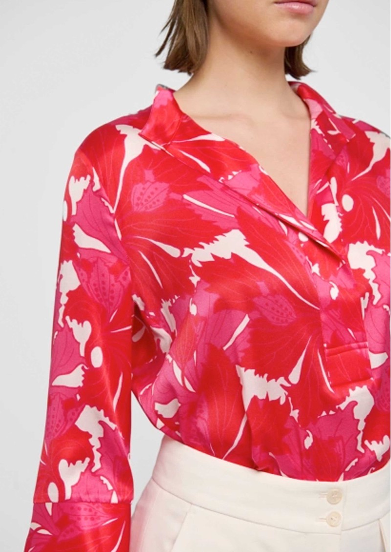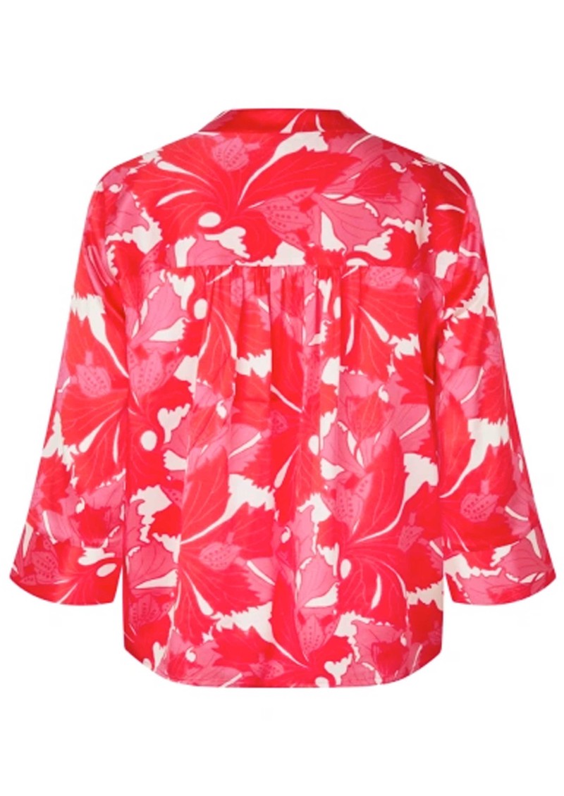 The Dea Kudibal Danittadea blouse is crafted from the brand’s signature silk stretch twill, featuring a relaxed, boxy fit with a V-opening neckline and sleeves that hit just below the elbow. Its ‘Hazel Berry’ design showcases an oversized pink abstract floral pattern, creating a bold, modern statement.