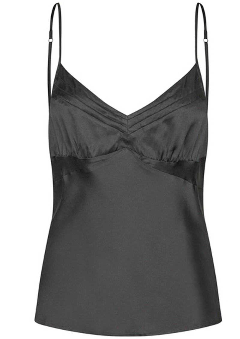 The Dea Kudibal Ivaladea camisole in black is a sleek and versatile wardrobe essential, made from the brand’s luxurious stretch silk twill. Designed with slim adjustable spaghetti straps, a gentle V-neckline, and subtle pleating at the neckline and underbust, it offers a refined, figure-flattering silhouette.