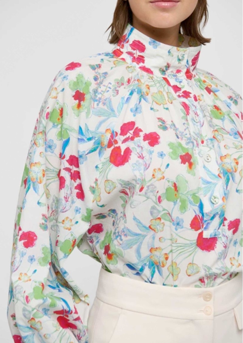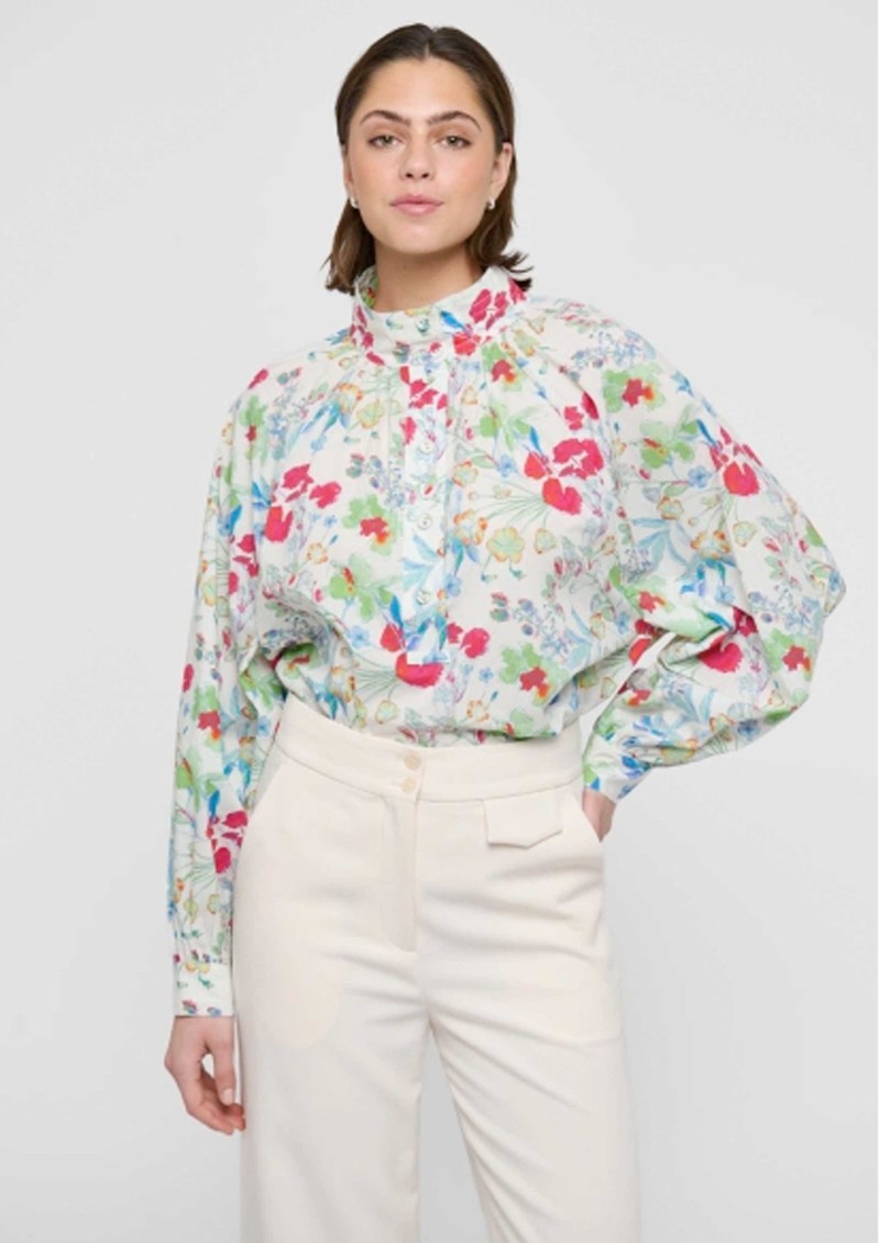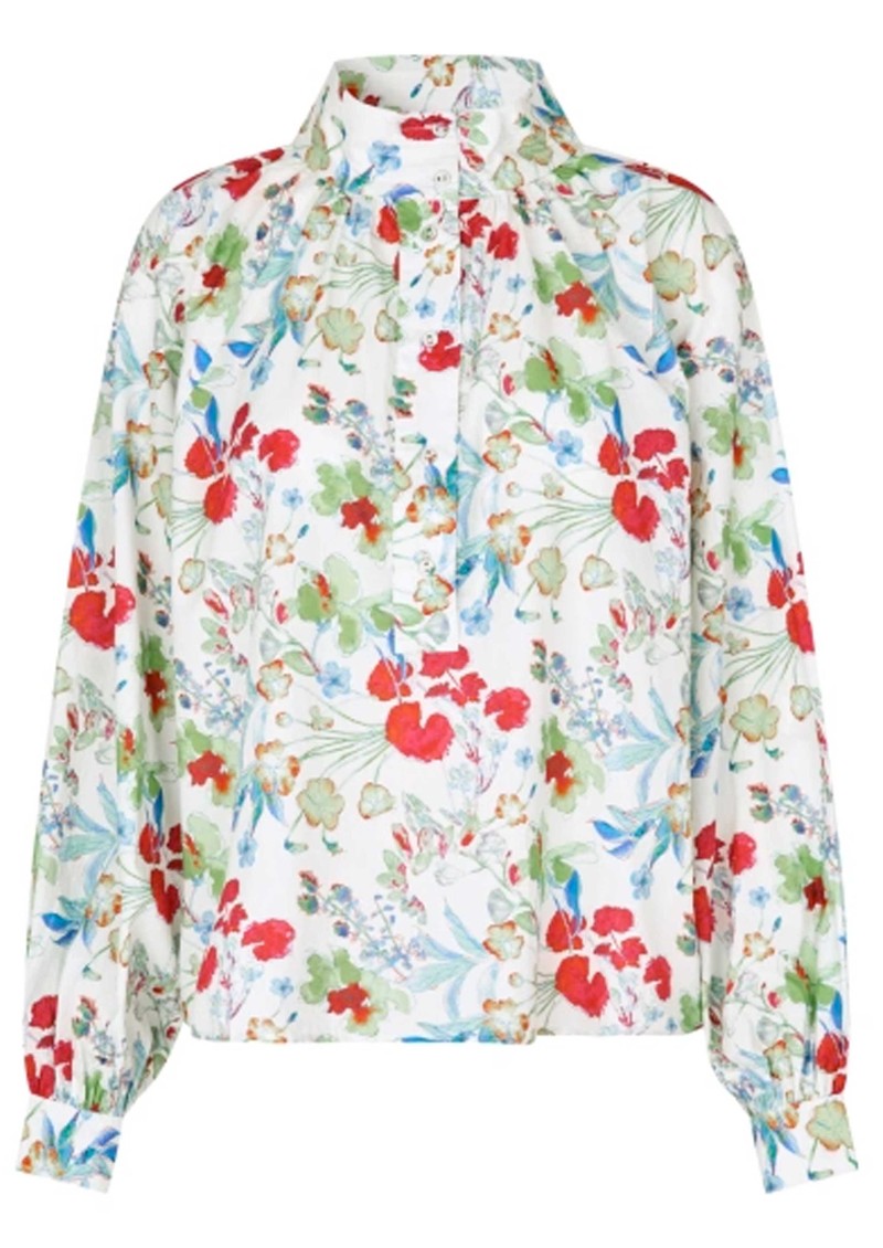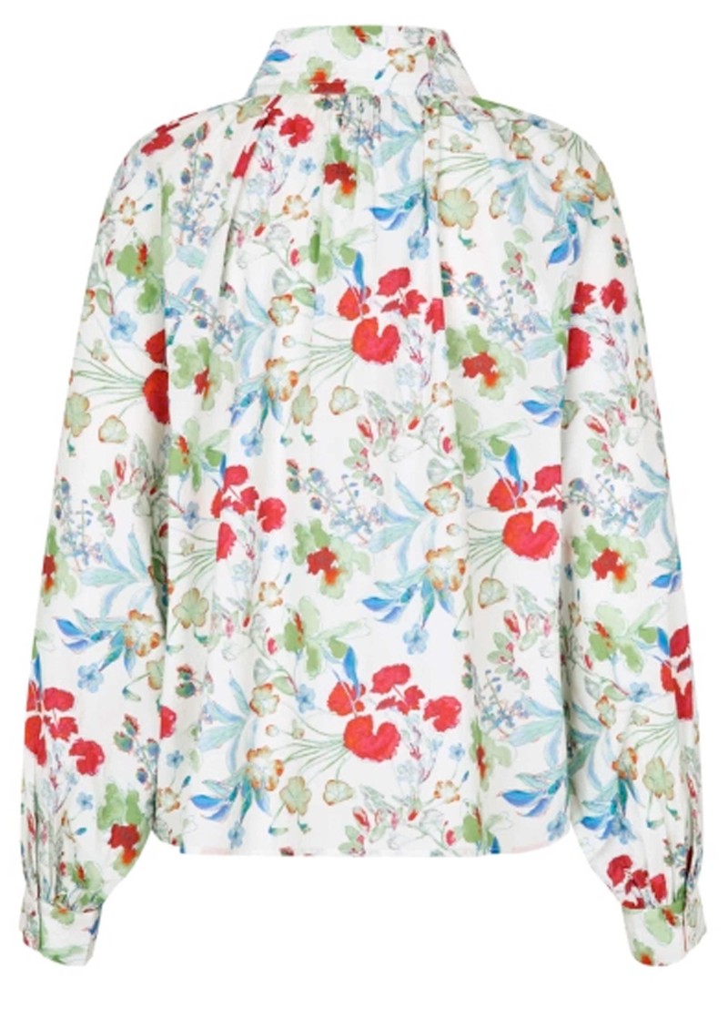 The Dea Kudibal Nicoladea blouse features a short stand collar and an all-over floral print, with a central button closure and delicate pintuck pleats under the collar. Designed with a relaxed, blousy fit and wide wrist cuffs, it combines effortless comfort with elegant detailing.