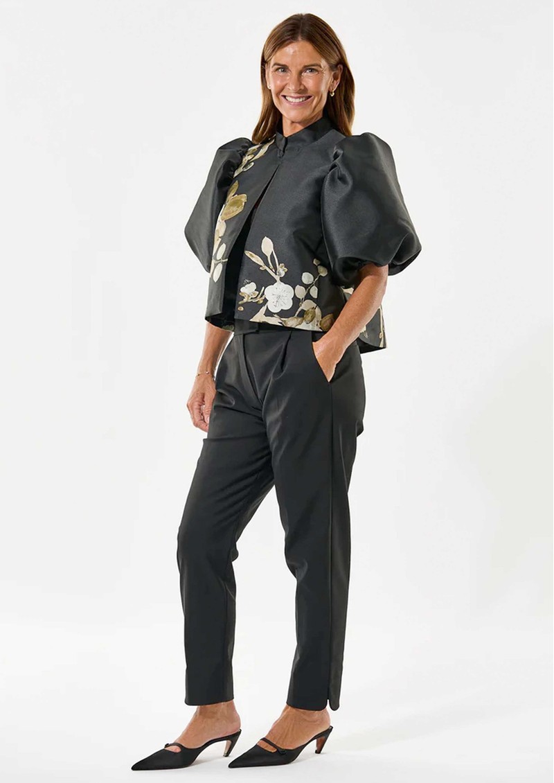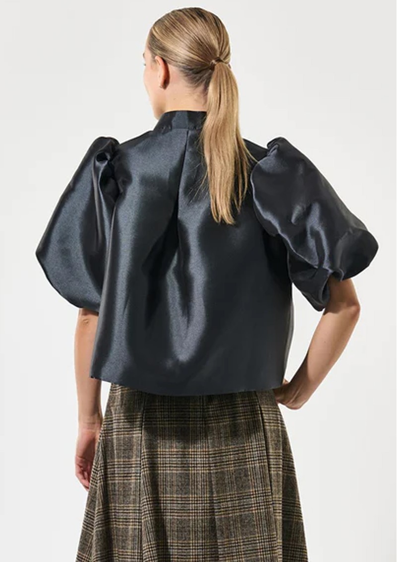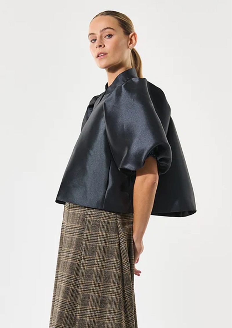 The Dea Kudibal Oliviadea Jacket is a striking statement piece for evening wear. Featuring a dramatic sculptural silhouette, oversized balloon sleeves, and a high collar, it fastens elegantly at the neck with a discreet hook-and-eye closure and includes hidden side seam pockets for practicality.