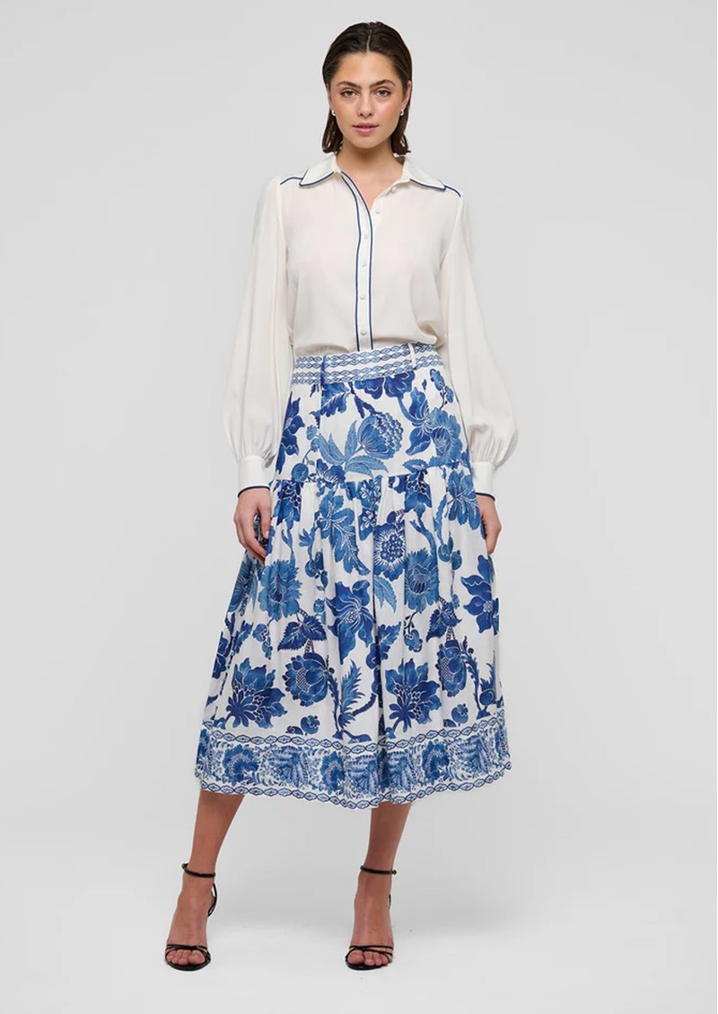 Introducing the stunning new Dea Kudibal Petrinedea skirt, designed in a beautiful delicate linen. Featuring a bold blue and white floral print, this gorgeous skirt features: