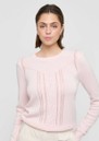 The Dea Kudibal Silviadea jumper in Rosewater features a classic crew neckline, pintuck detailing at the shoulders, and delicate embroidered accents for a refined, feminine touch. With full-length sleeves and ribbed edges, this cosy jumper combines effortless style with everyday comfort.