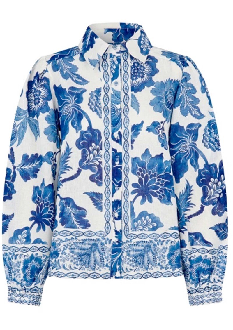 The Dea Kudibal Siomadea blouse in ‘Blossoming’ is a fresh, feminine piece with flowing, voluminous sleeves and a flattering regular fit that elevates any outfit. Part of the new-season Blue House collection, it features a soft floral print on a light base, a classic collar, and central button closure, drawing inspiration from Danish ceramic artist Bjørn Wiinblad and his enchanting Blue House near Copenhagen.