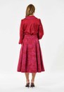 The Dea Kudibal Umadea blouse in Freesia Cardinal is a vibrant showstopper, crafted from the brand’s signature stretch silk twill in a rich red-pink base with a contrasting pink edge at the collar. Designed with intricate pintucks, softly pleated trims, a scalloped hemline, and fluid full-length sleeves, it blends bold colour with graceful detailing for a look that’s both feminine and refined.