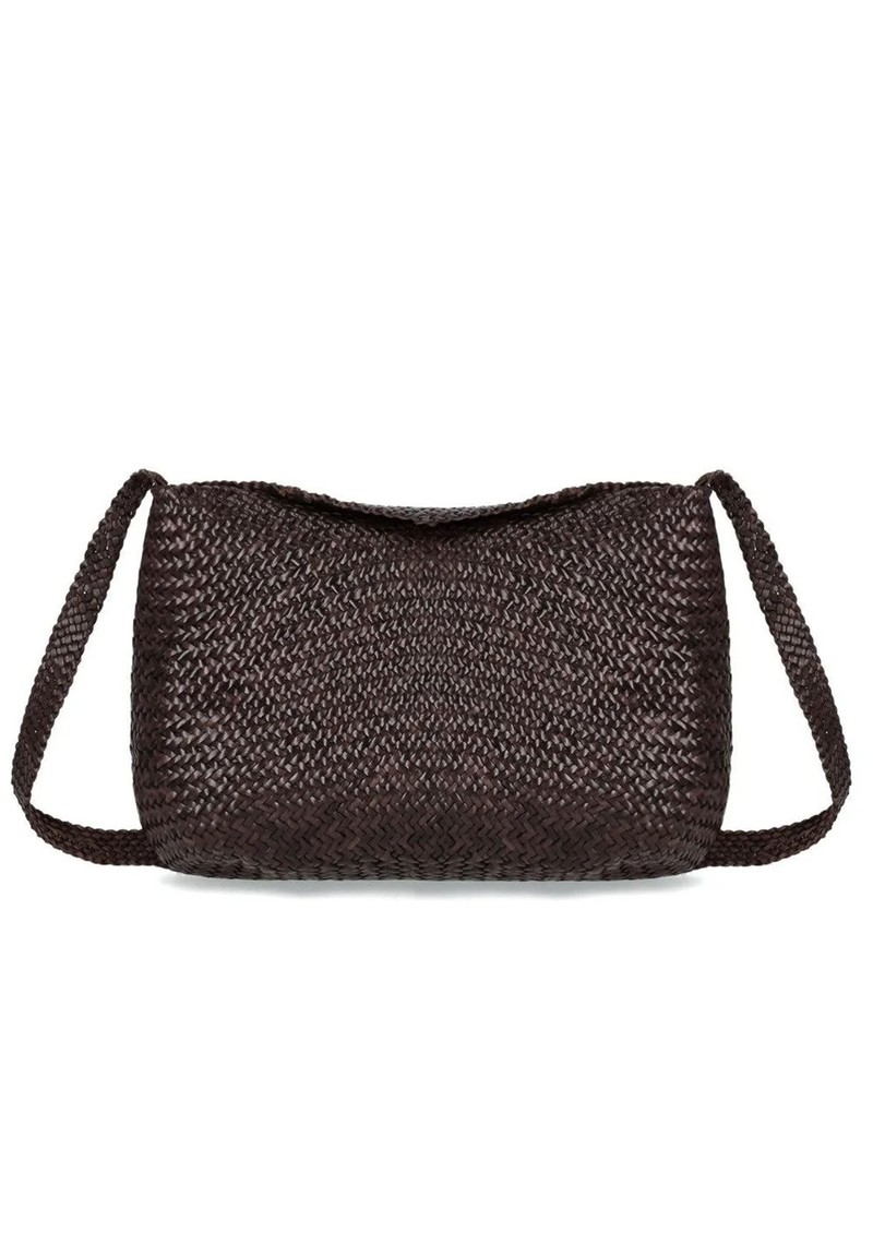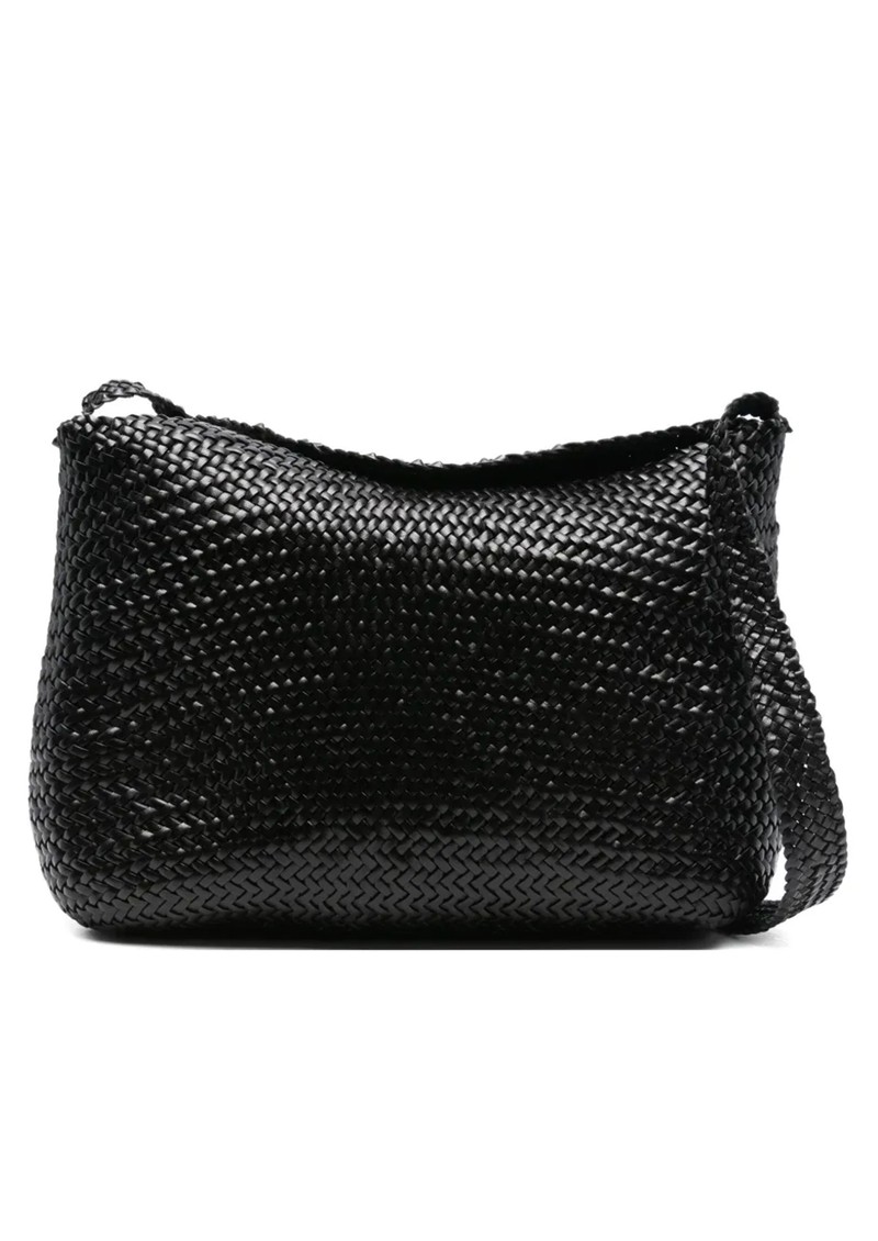 Introducing the Dragon Diffusion Santa Marta in black- a sleek, contemporary addition to this season’s lineup. Expertly handwoven from buffalo calf leather, its distinctive diagonal weave, secure flap closure, and adjustable shoulder strap blend artisanal detail with effortless everyday wear.