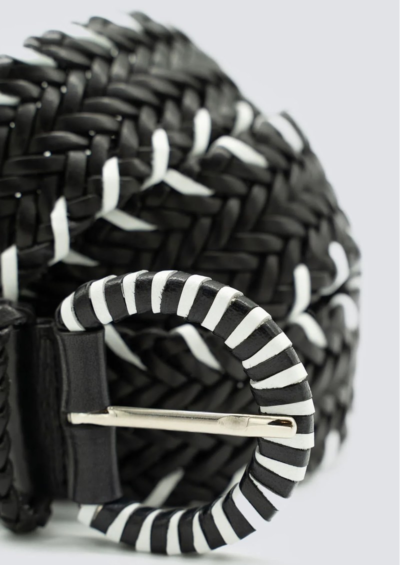 DRAGON DIFFUSION Wrap Circle Handwoven Leather Belt - Black & White