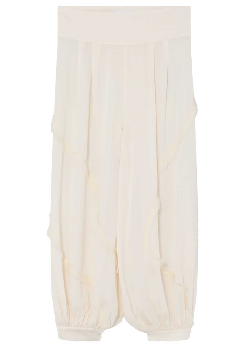 The Day Birger et Mikkelsen Beate trousers are a modern take on the harem silhouette, cut in matte crepe with a relaxed shape and subtle fringe detailing. Finished with a back zip closure, adjustable ankle drawstrings, and slim cuffs, they’re an easy balance of comfort and polish.