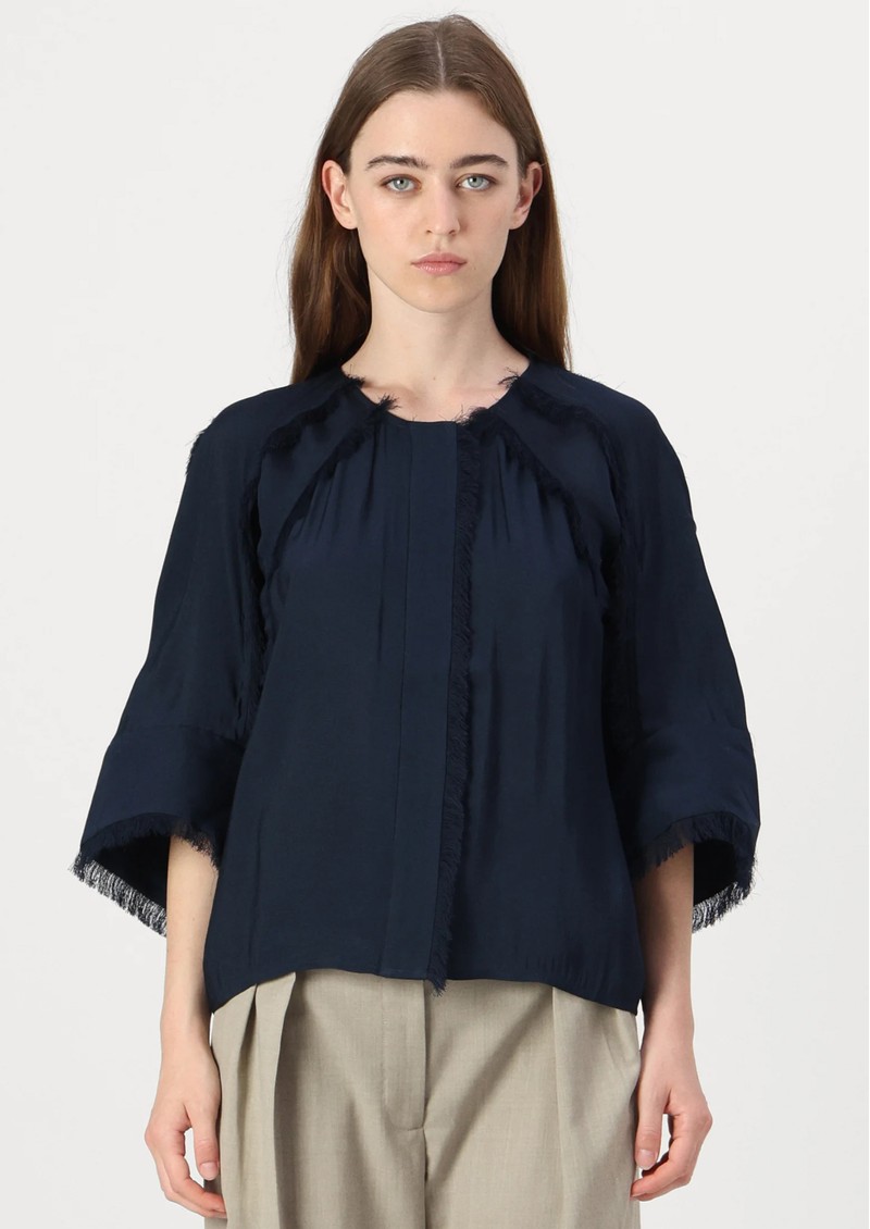 Reinvented for the autumnal season the Cassie top by Day Birger et Mikkelsen is now here in a gorgeous dark sapphire colourway. Adorned with fringe detailing and wide sleeves this Cassie top is the perfect addition to take you from day to night.