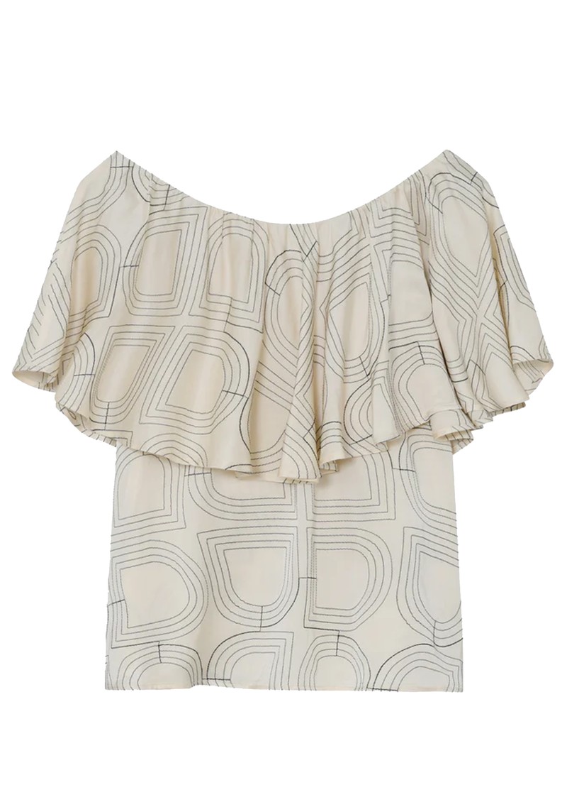 The Day Birger Et Mikkelsen Hon off Shoulder Top adds soft texture and standout style to your wardrobe rotation with its modern print and versatile off shoulder design. Designed for everyday elegance, it features an eye-catching frill for easy elevating styling. Key features include: