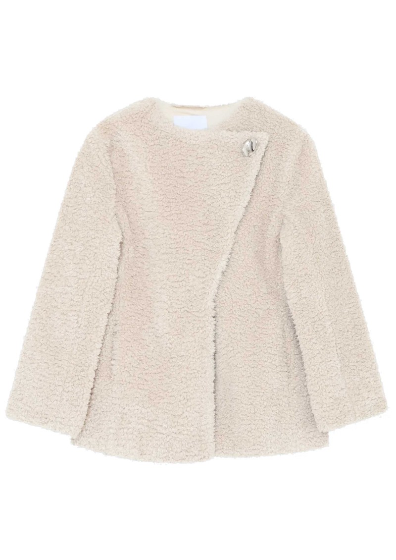 The Day Birger et Mikkelsen Palle Faux Fur Jacket is a cosy, fluffy piece featuring an asymmetrical front closure with a large shoulder button and hooks down the front. It includes side and interior pockets, a rounded neckline, and a semi-fitted silhouette, fully lined for warmth and comfort